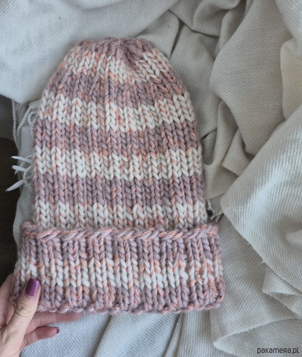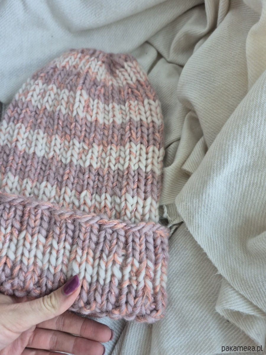 Wełniana czapka WOOLLY brudny róż wełna owcza