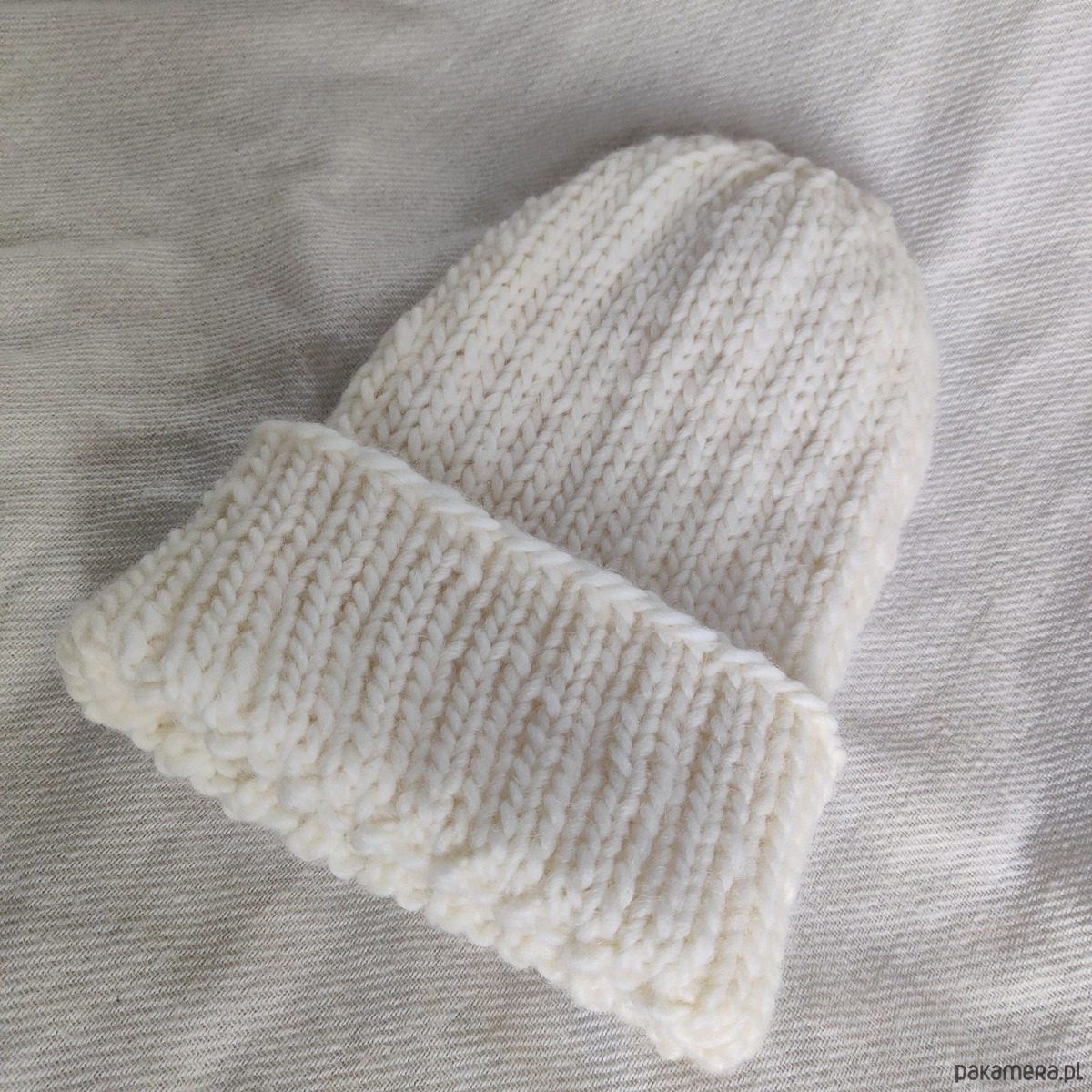 Czapka o mięsistym grubym splocie z naturalnym składem, w kolorze "śmietanki"