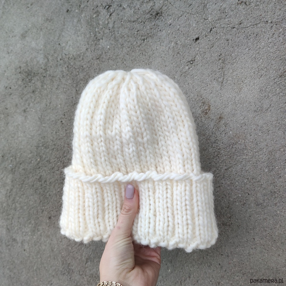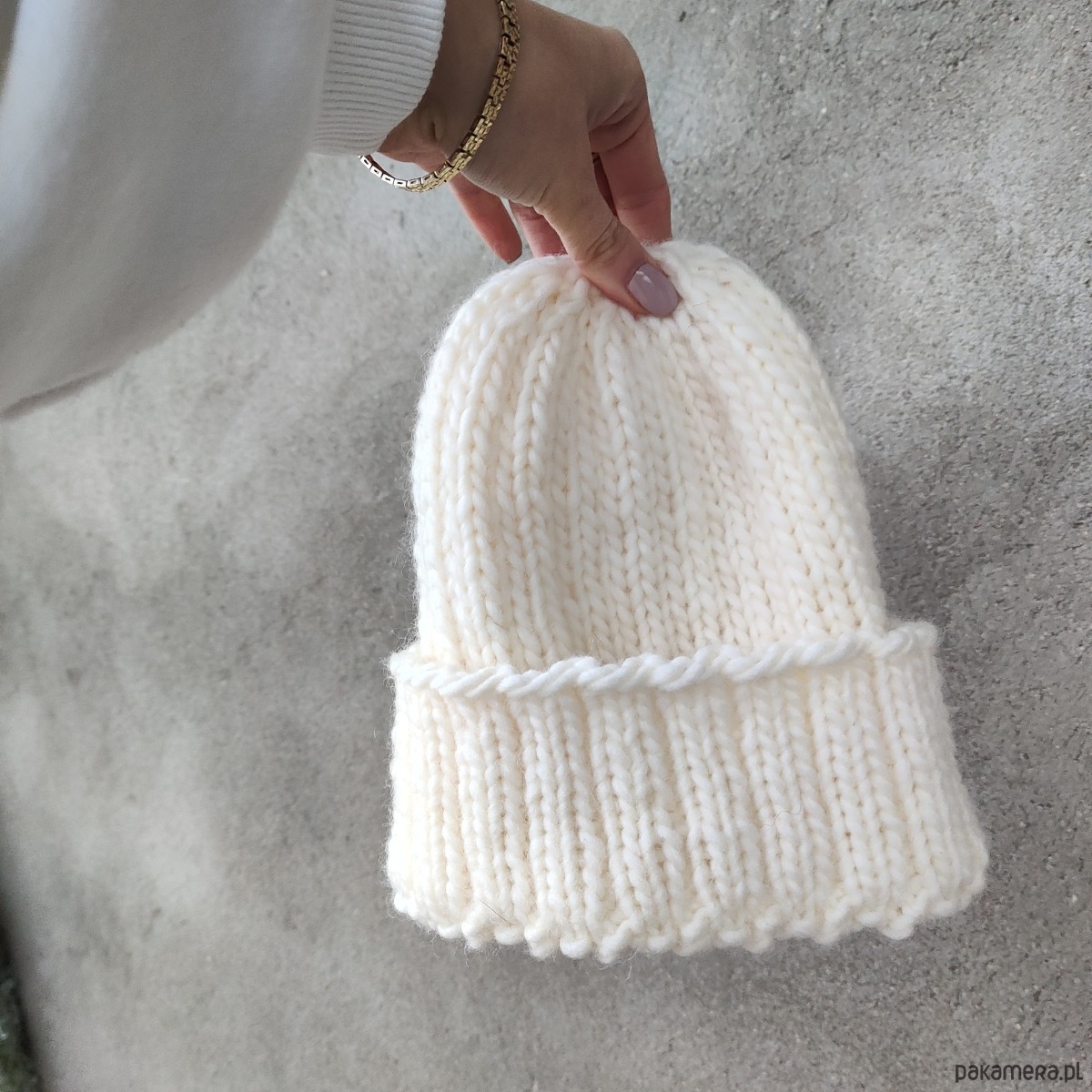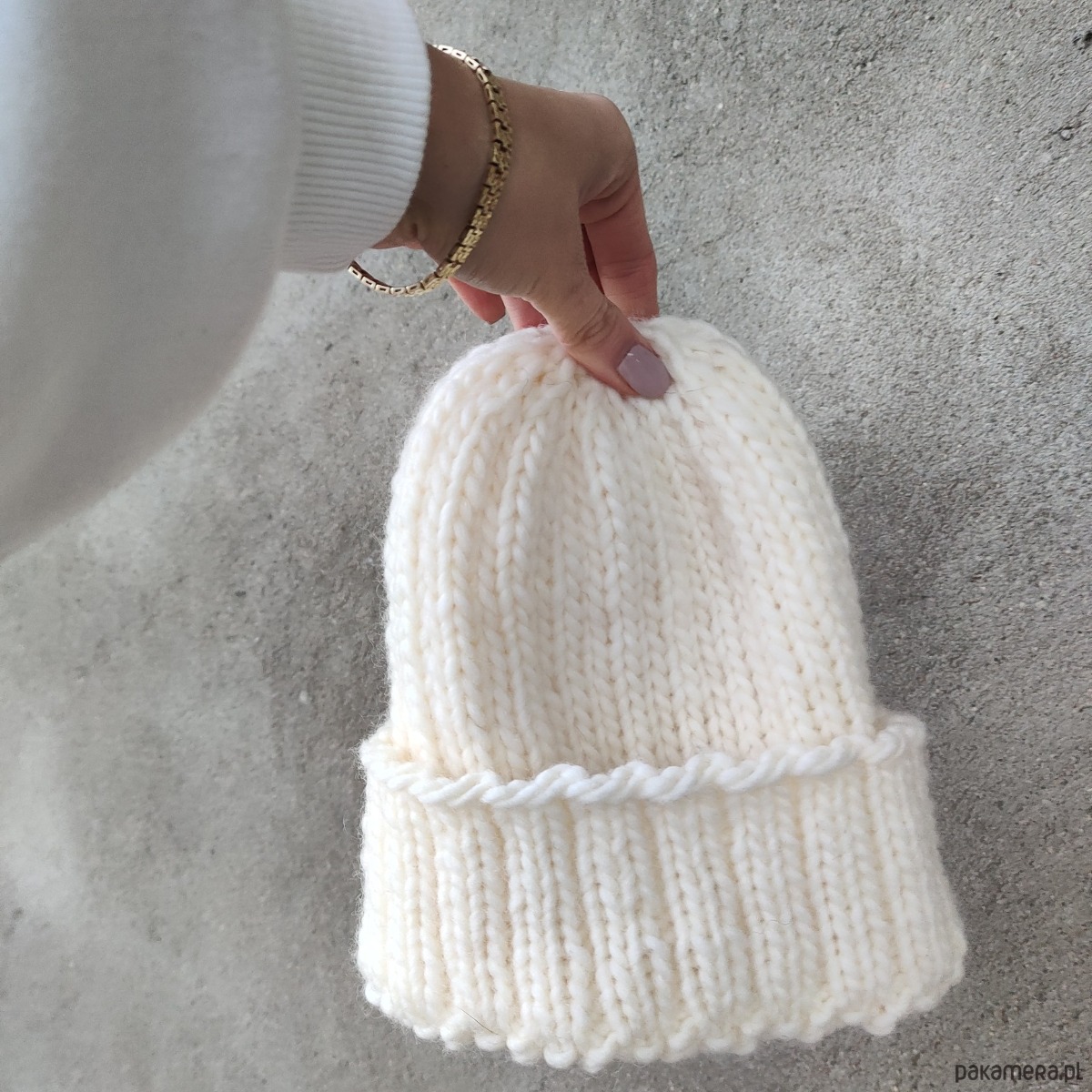 Wełniana czapka WOOLLY z wełny owczej kremowa