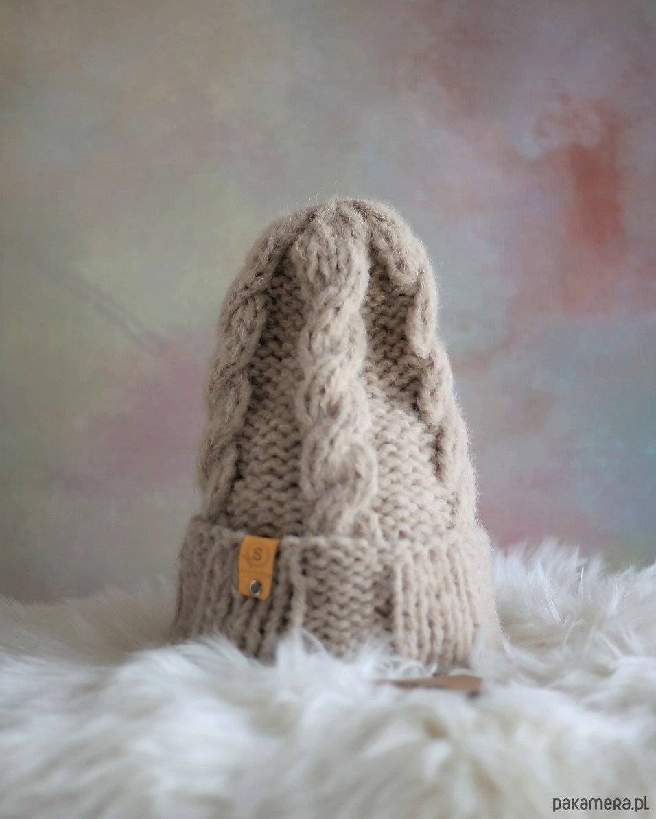 Ciepła wełniana czapka z warkoczami LULLABY w kolorze latte
