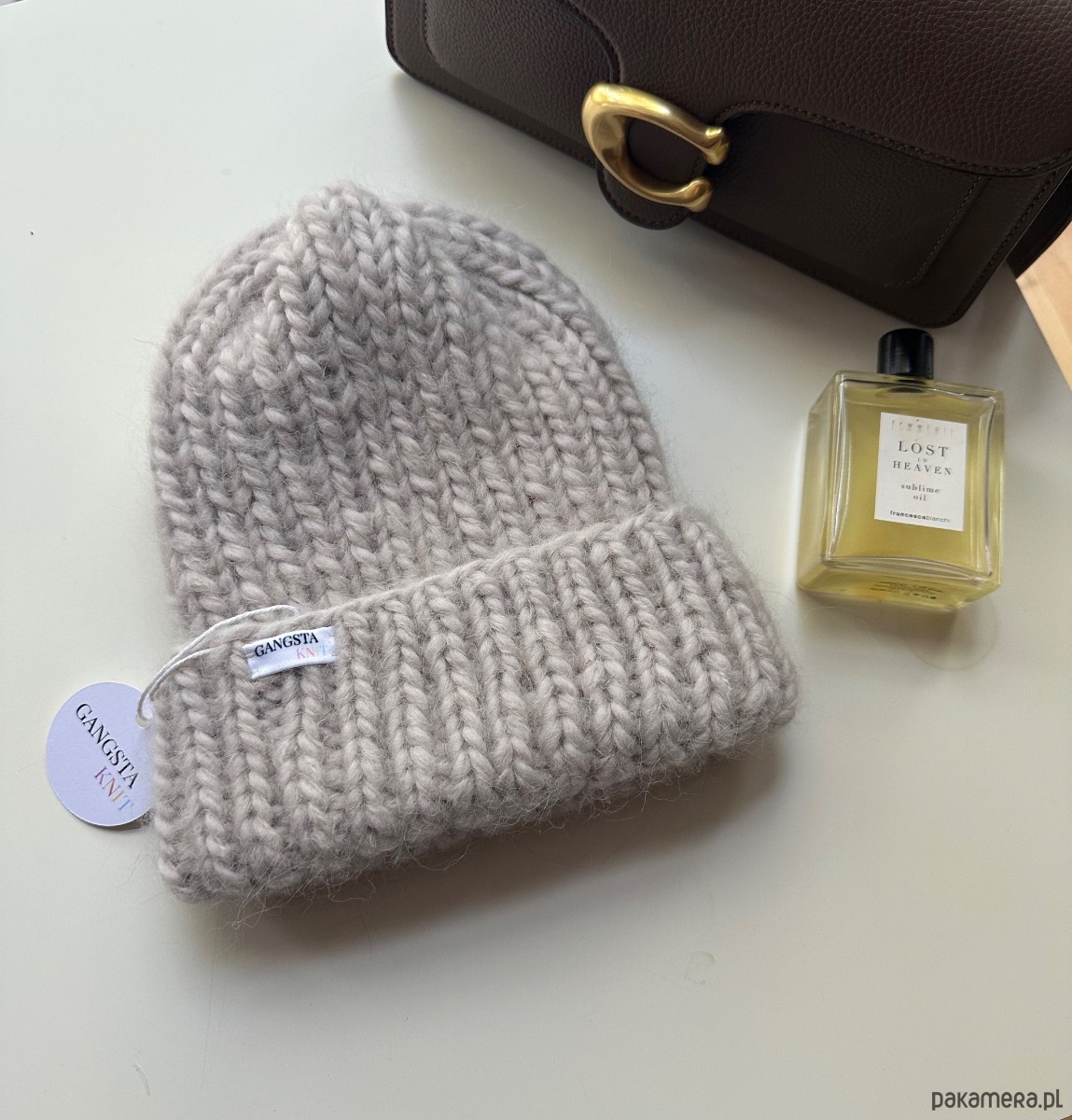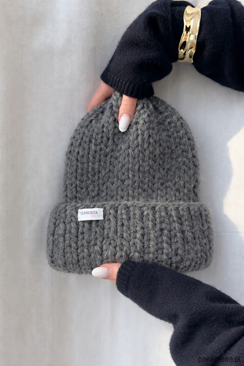 Wełniana czapka z dodatkiem alpaki 100% wełna kolor szary