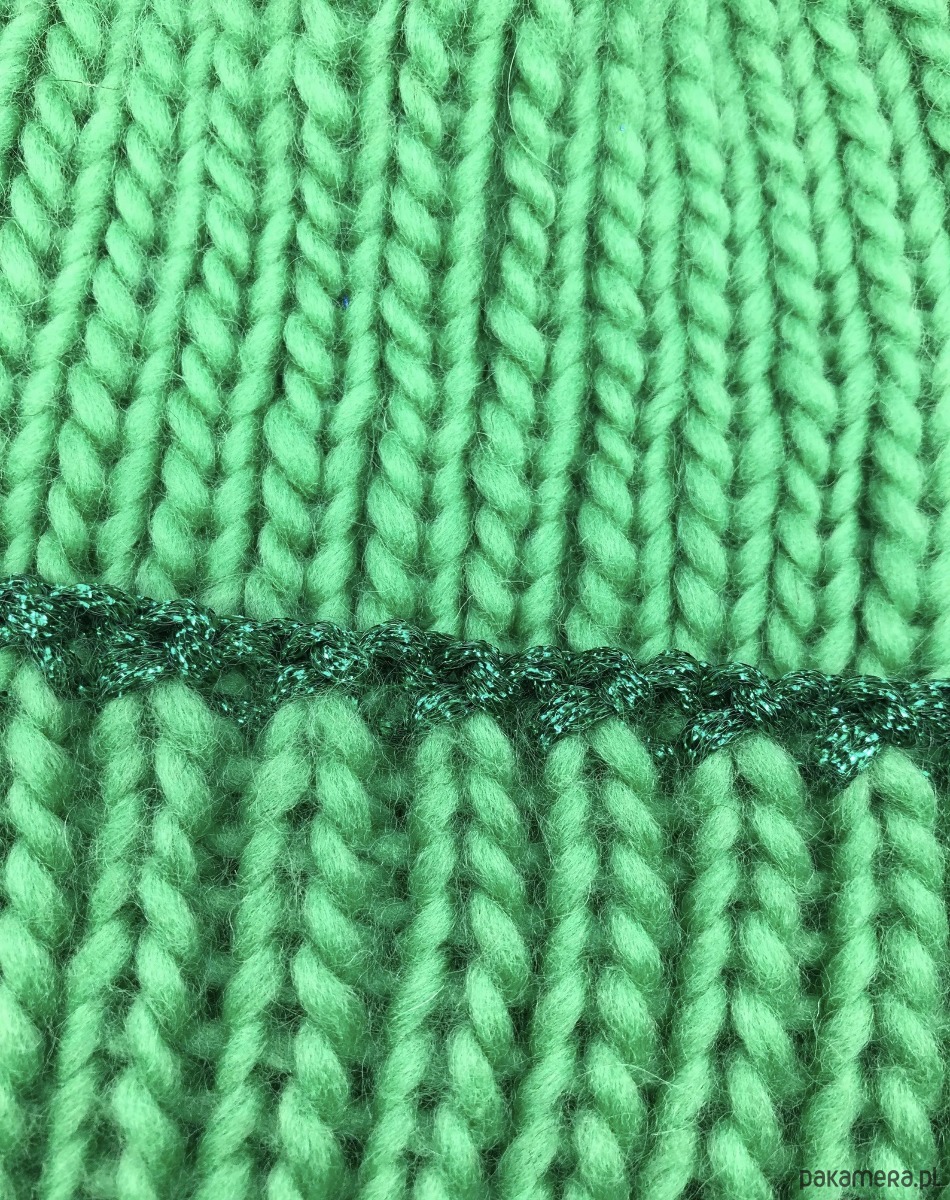 Wełniana czapka z dodatkiem błyszczącej nitki handmade ręczna robota zielona