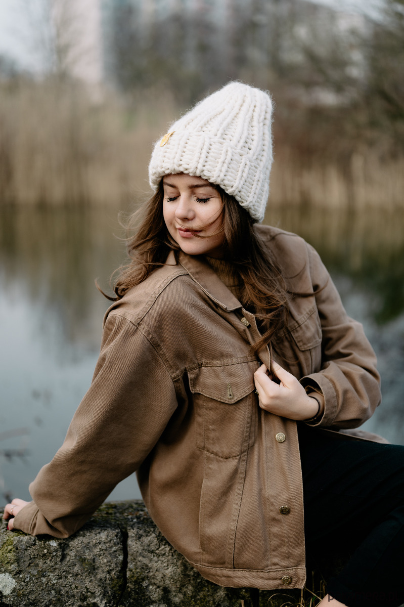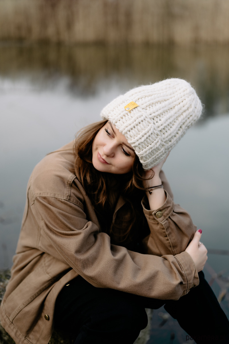 Wyjątkowa wełniana czapka w pięknym naturalnym kolorze