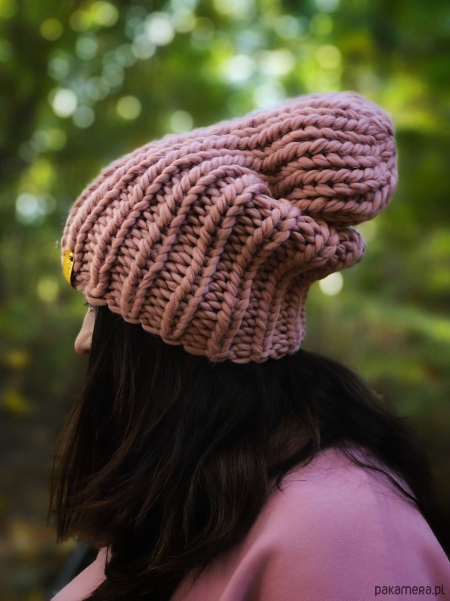 Czapka jest gruba i cieplutka, zrobiona ścisłym splotem,