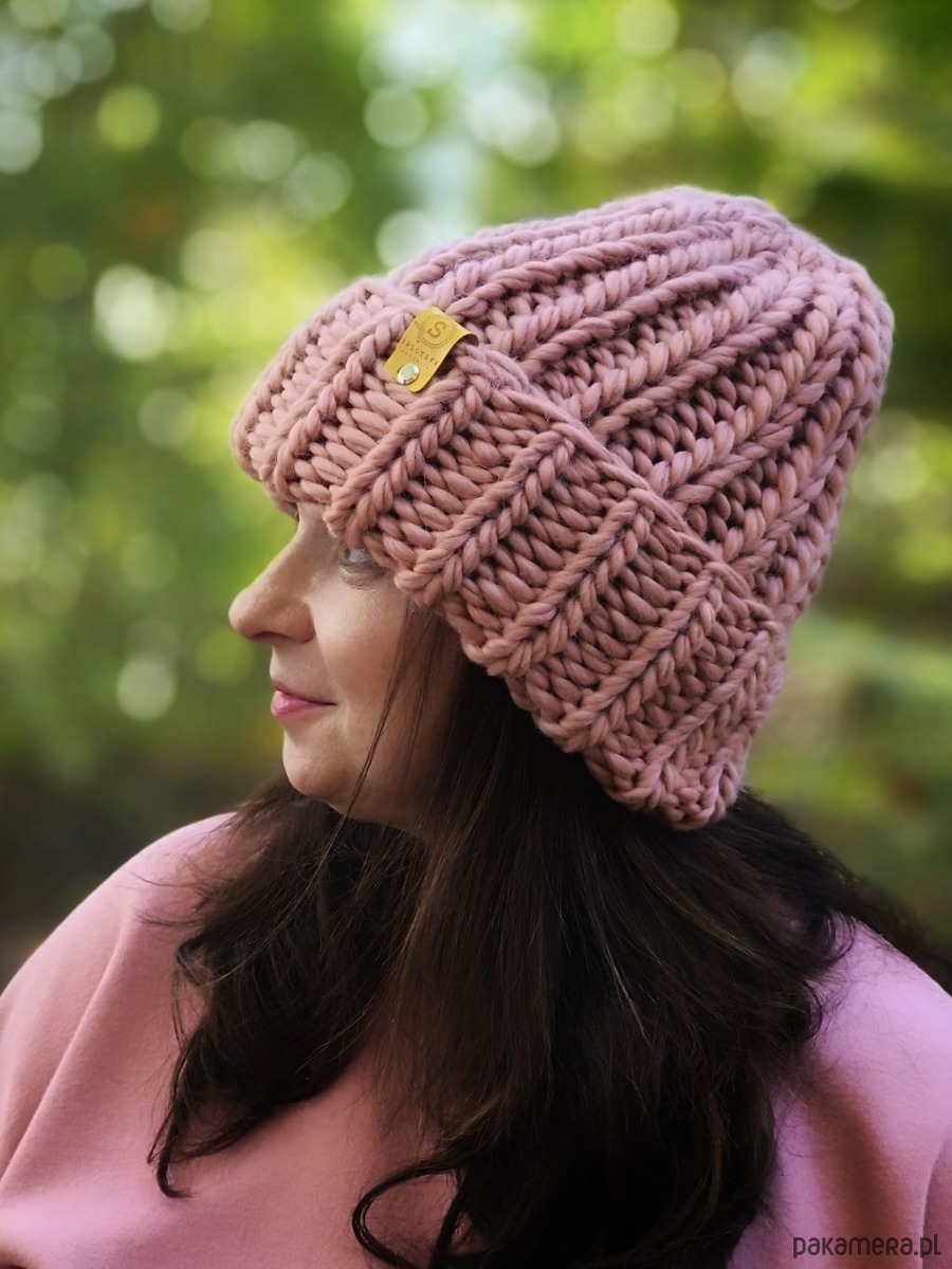 Wyjątkowa wełniana czapka w cudnym kolorze zgaszonego brudnego różu