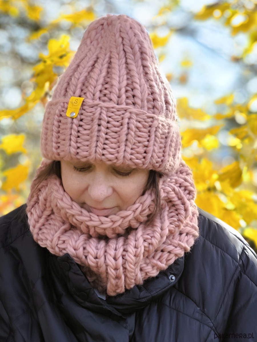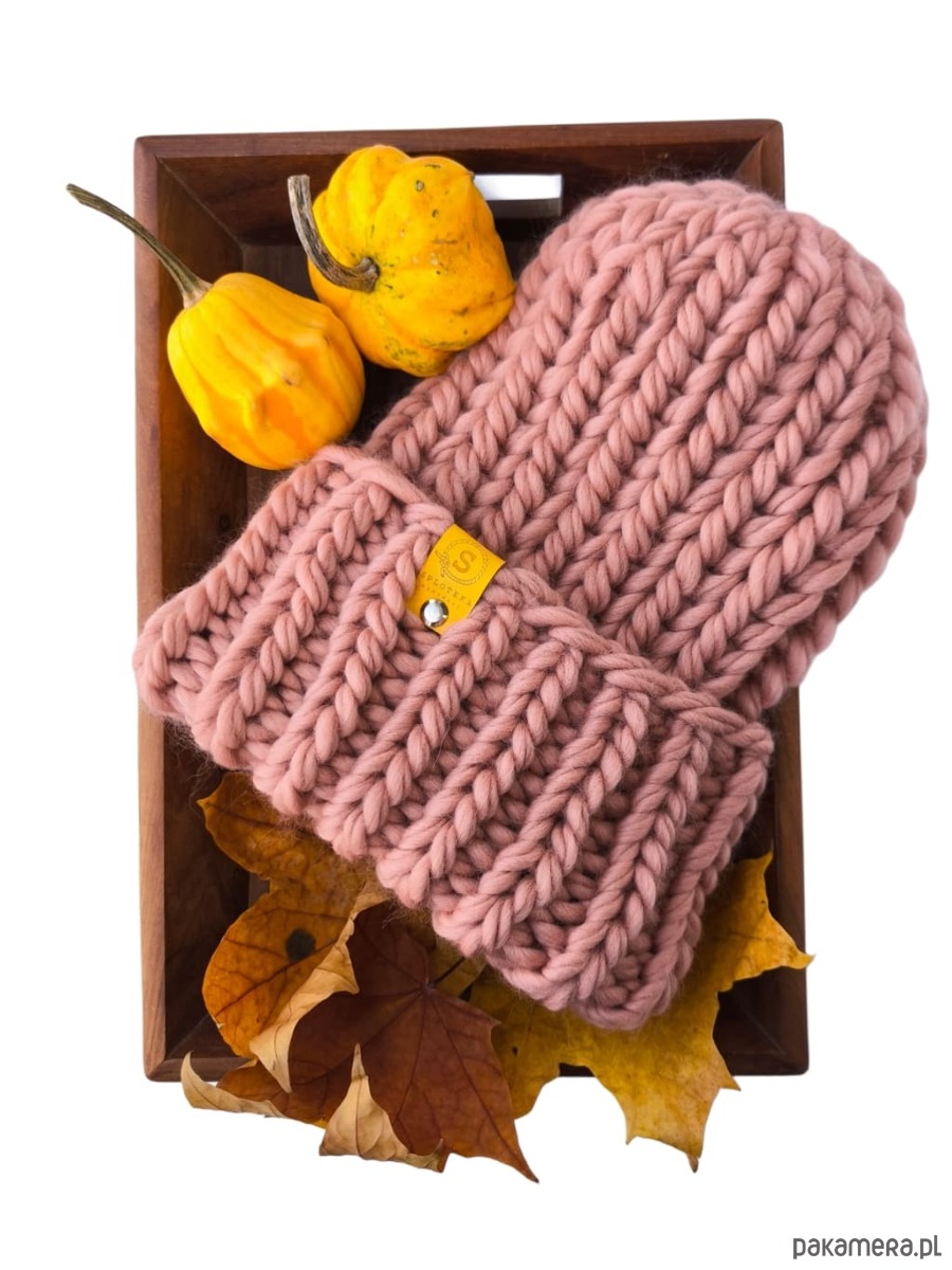 Wyjątkowa wełniana czapka w cudnym kolorze zgaszonego brudnego różu