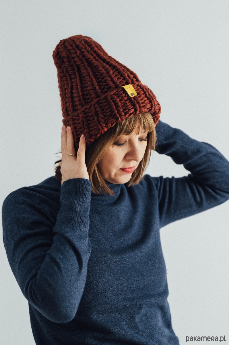 Wyjątkowa wełniana czapka w pięknym jesiennym kolorze.