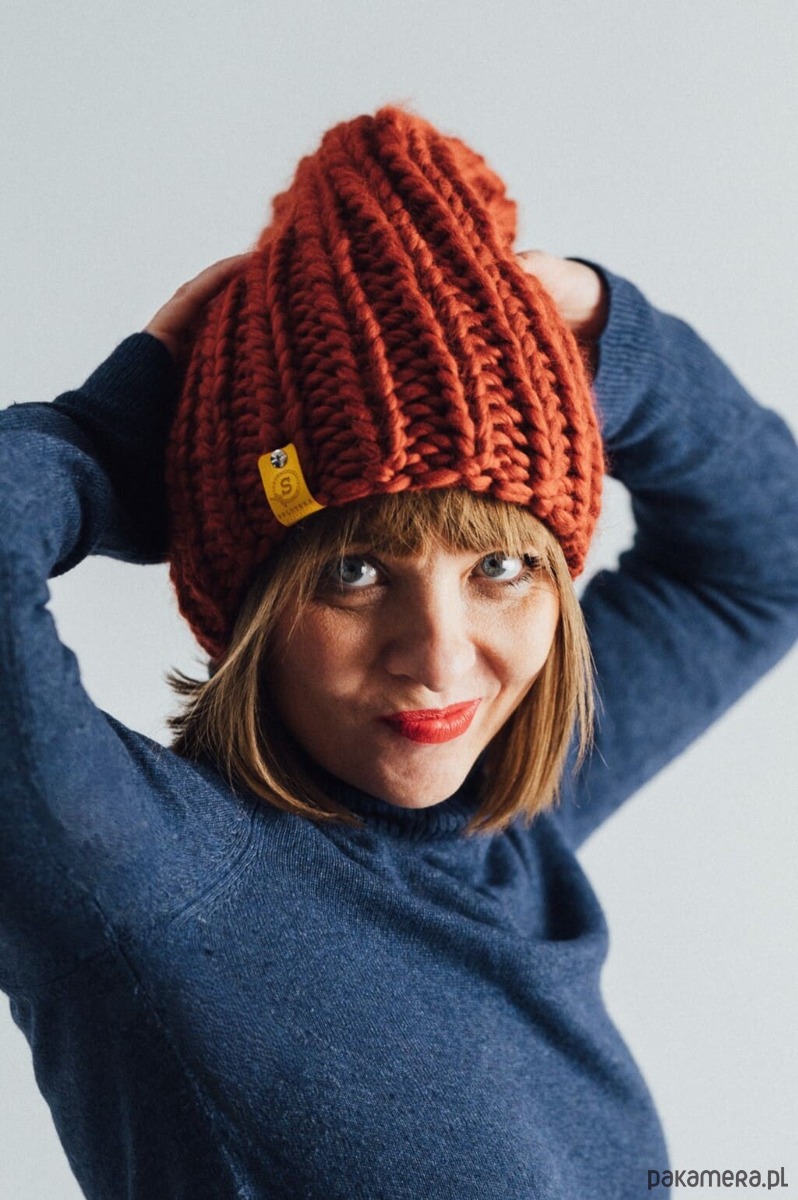 Wyjątkowa wełniana czapka w pięknym jesiennym kolorze