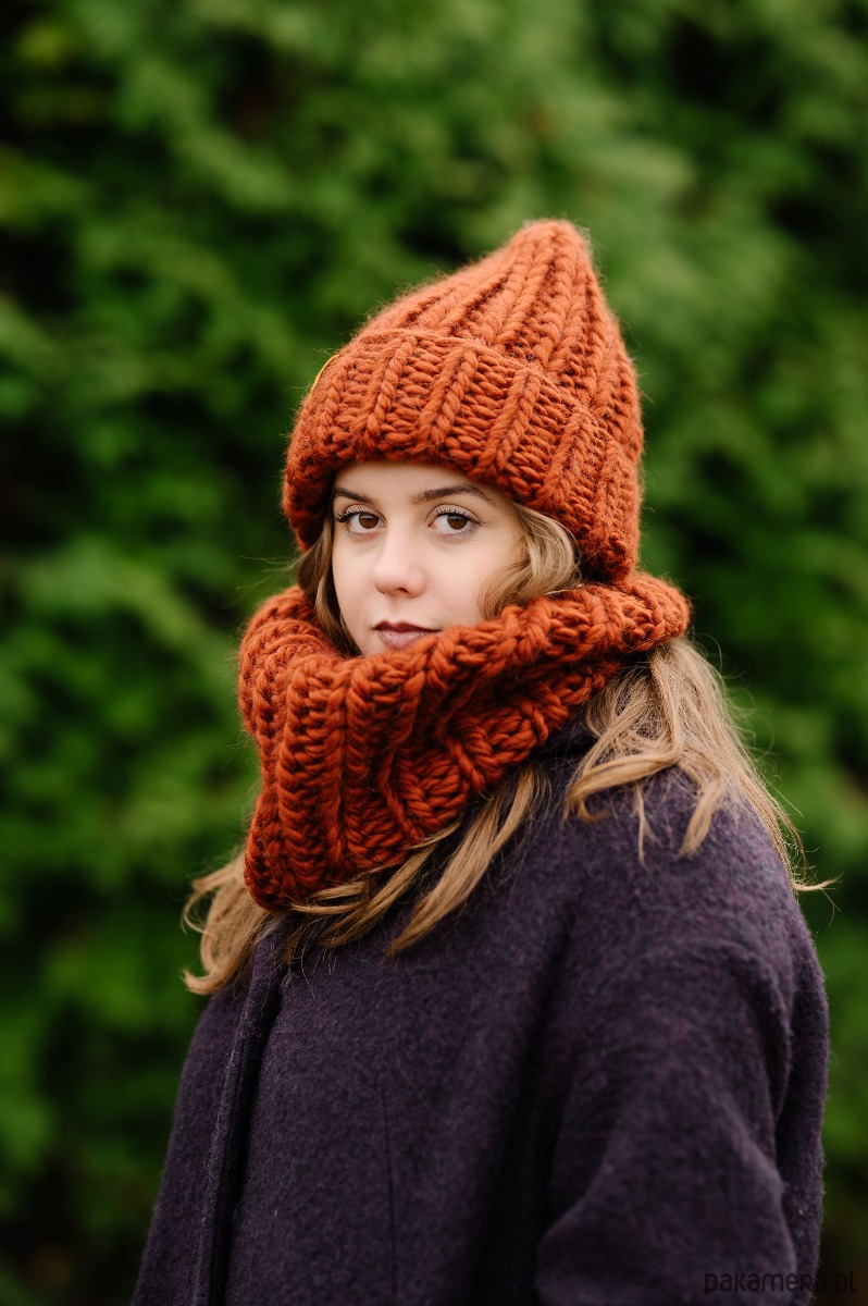 Czapka jest gruba i cieplutka, zrobiona ścisłym splotem,