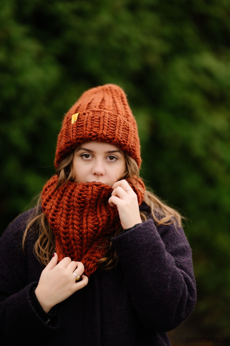 Wełniana czapka zimowa PERUVIAN WOOLY terakota