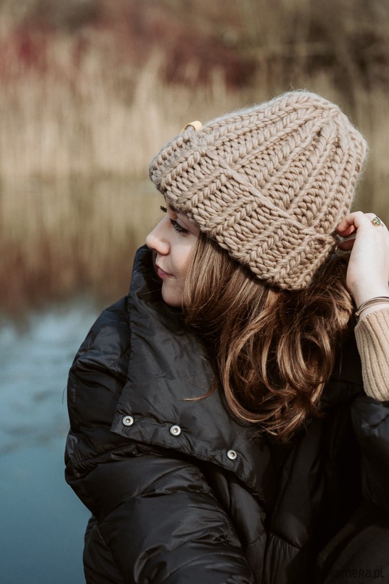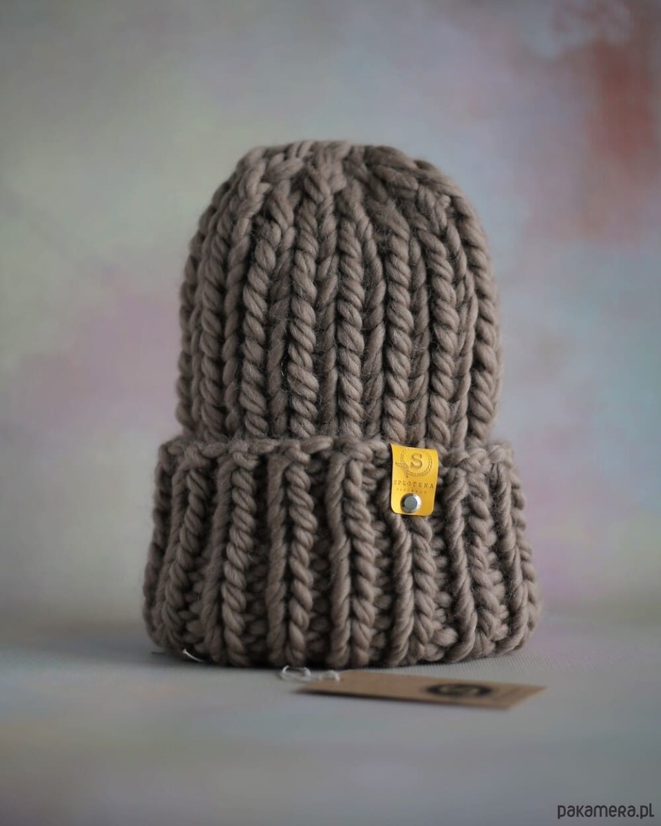 Czapka jest gruba i cieplutka, zrobiona ścisłym splotem,