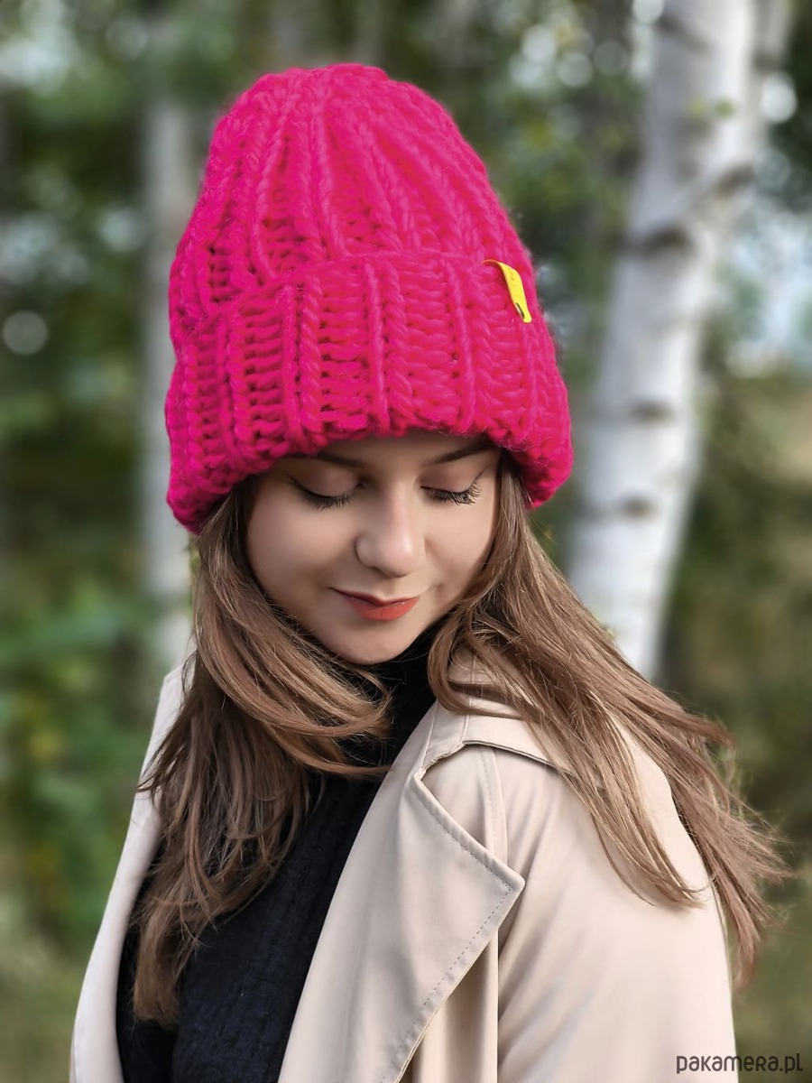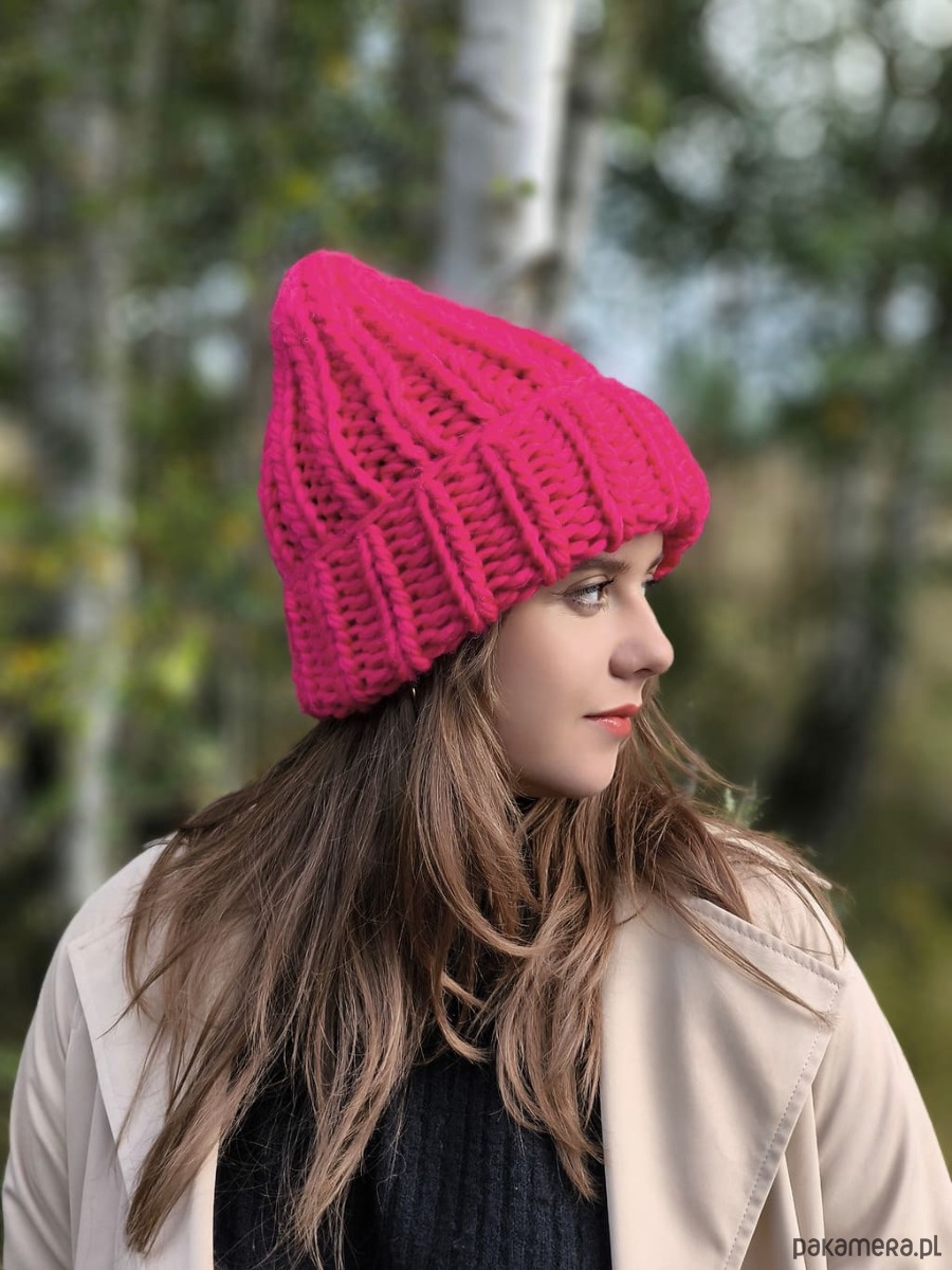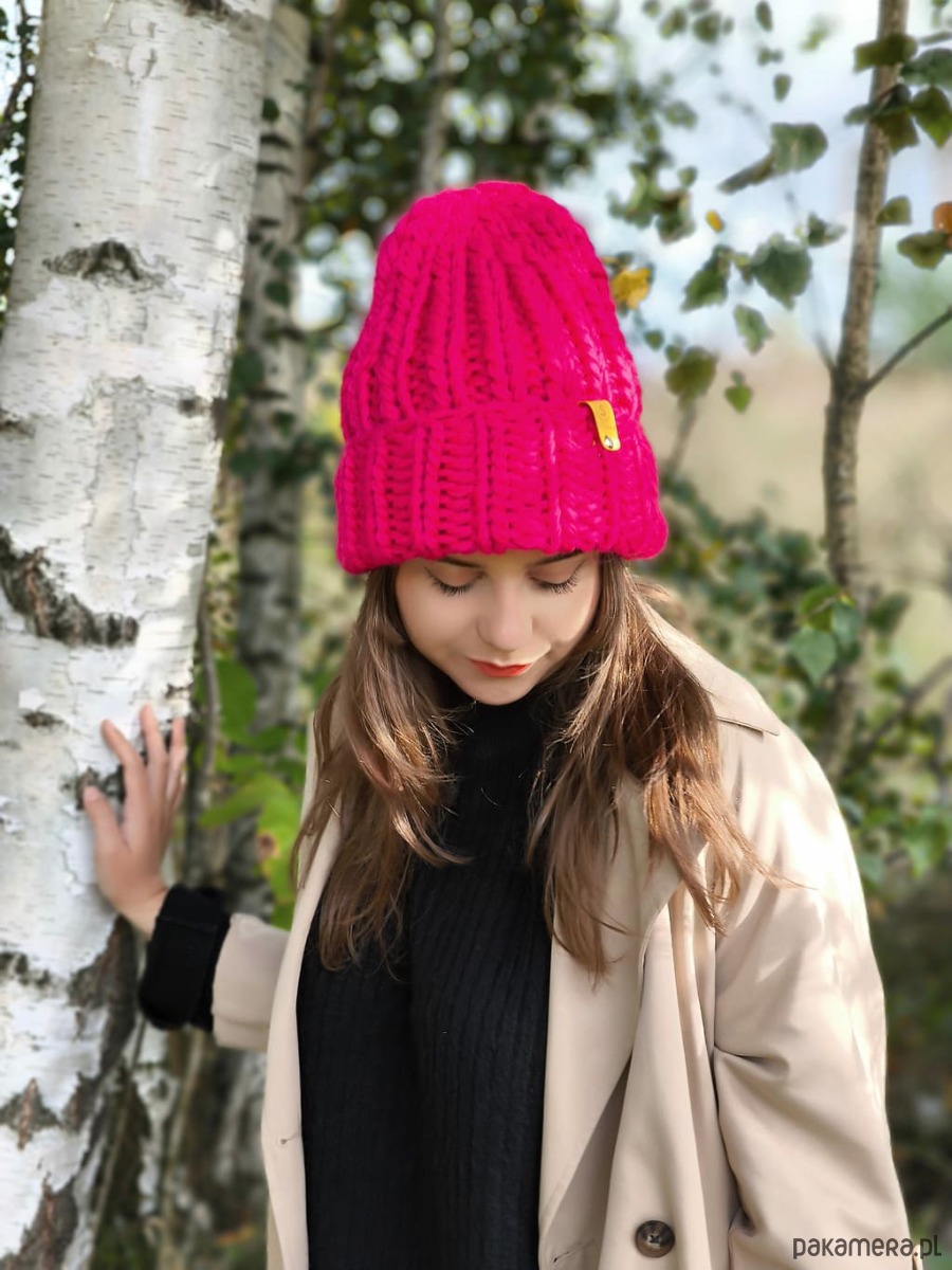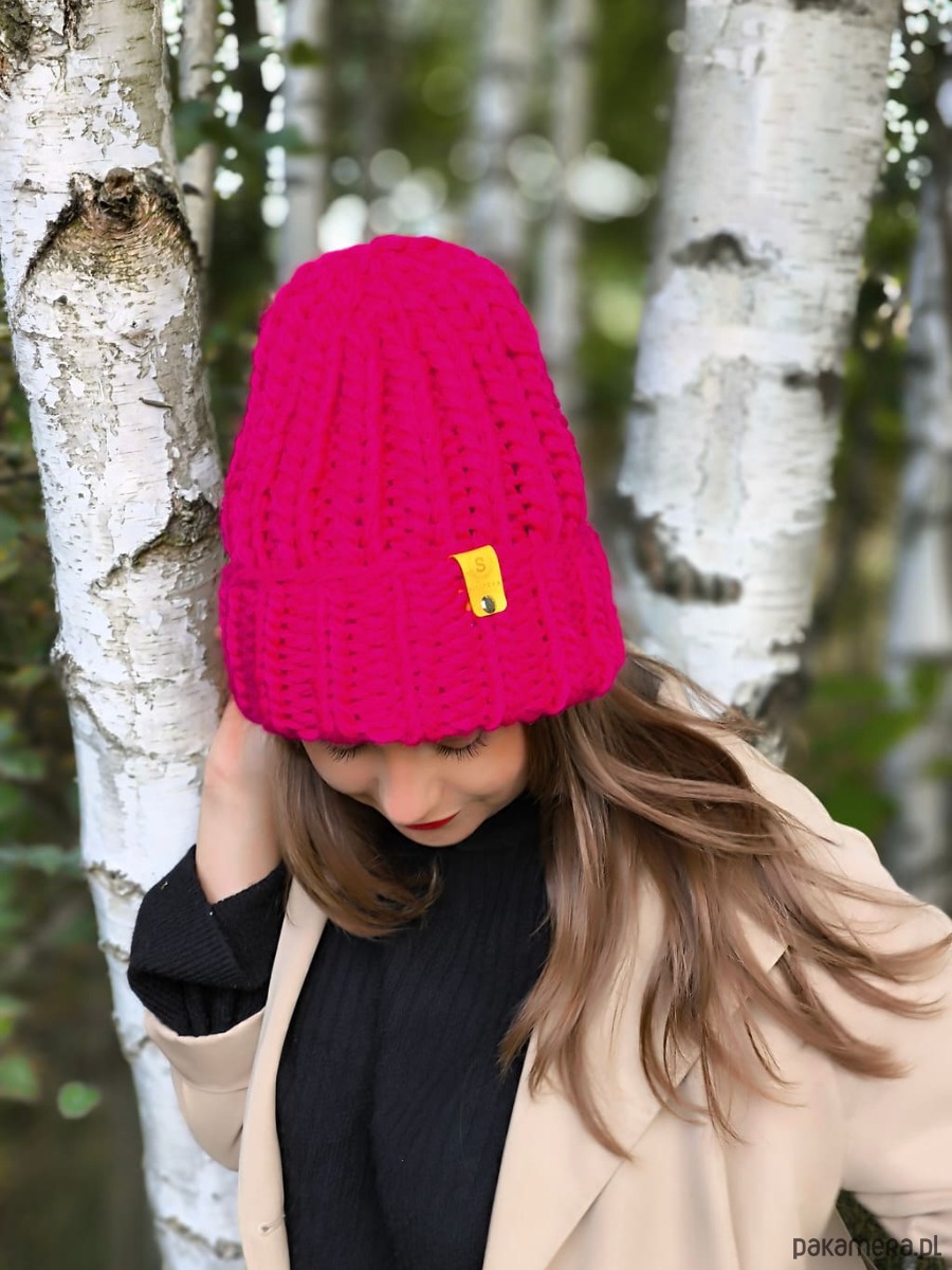 Wyjątkowa wełniana czapka w szałowym kolorze magenta- wściekły róż