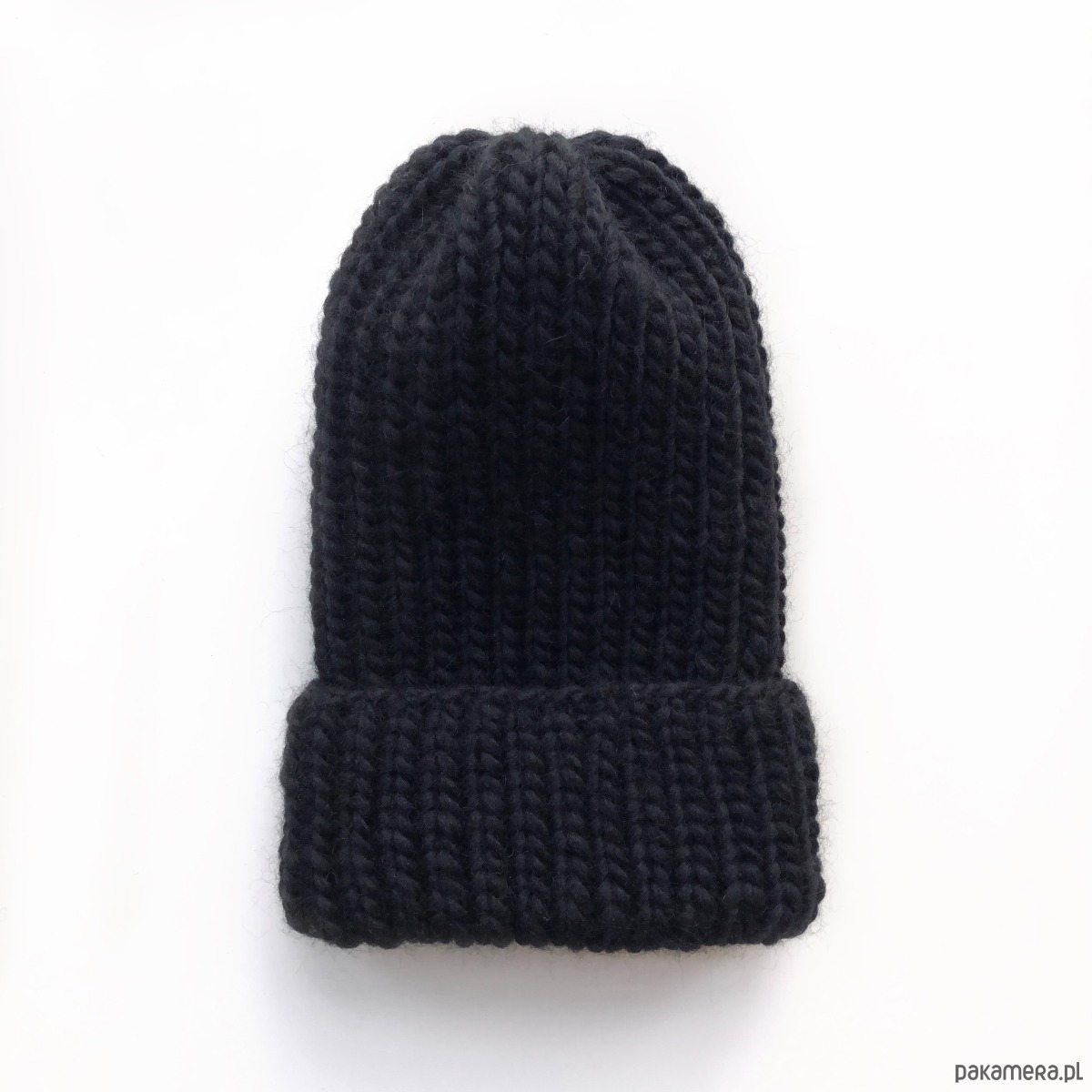 Wełniana czarna czapka Lily long 100% wełna handmade ręcznie robiona