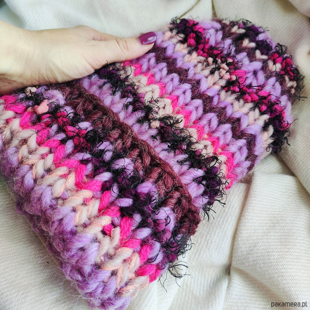 Wełniana kolorowa czapka na drutach WOOLLY pink bubble