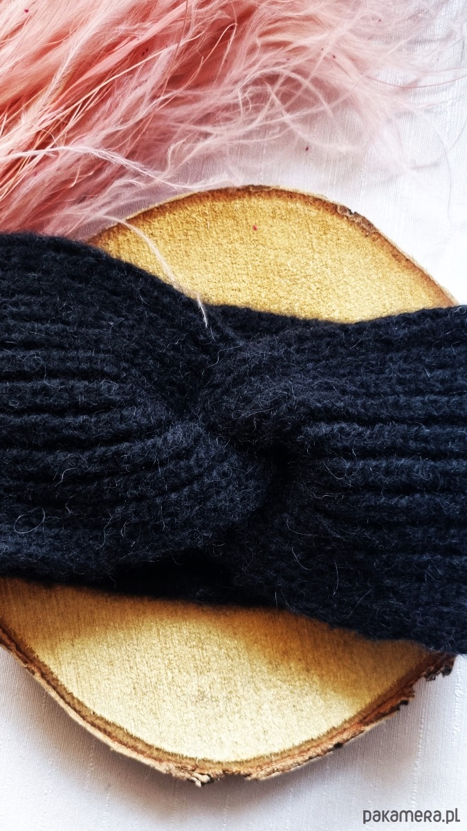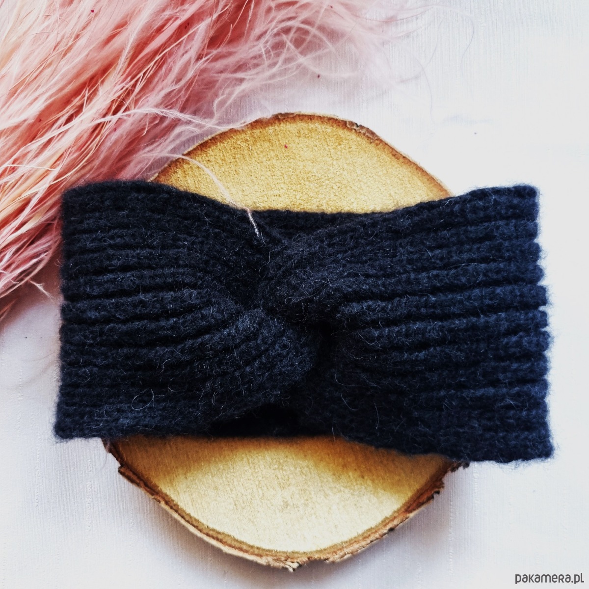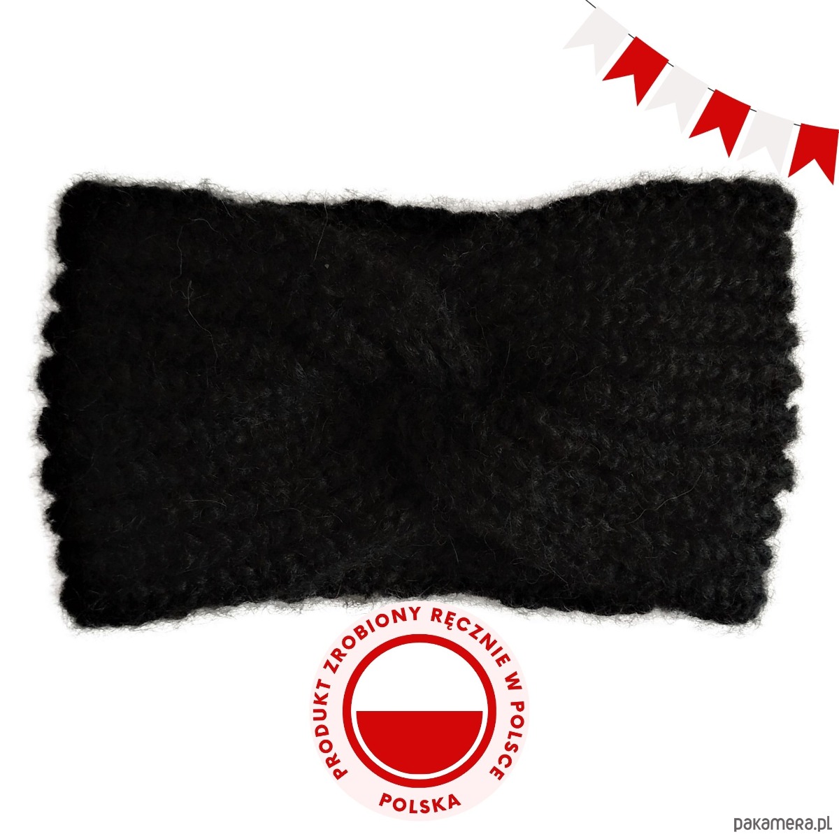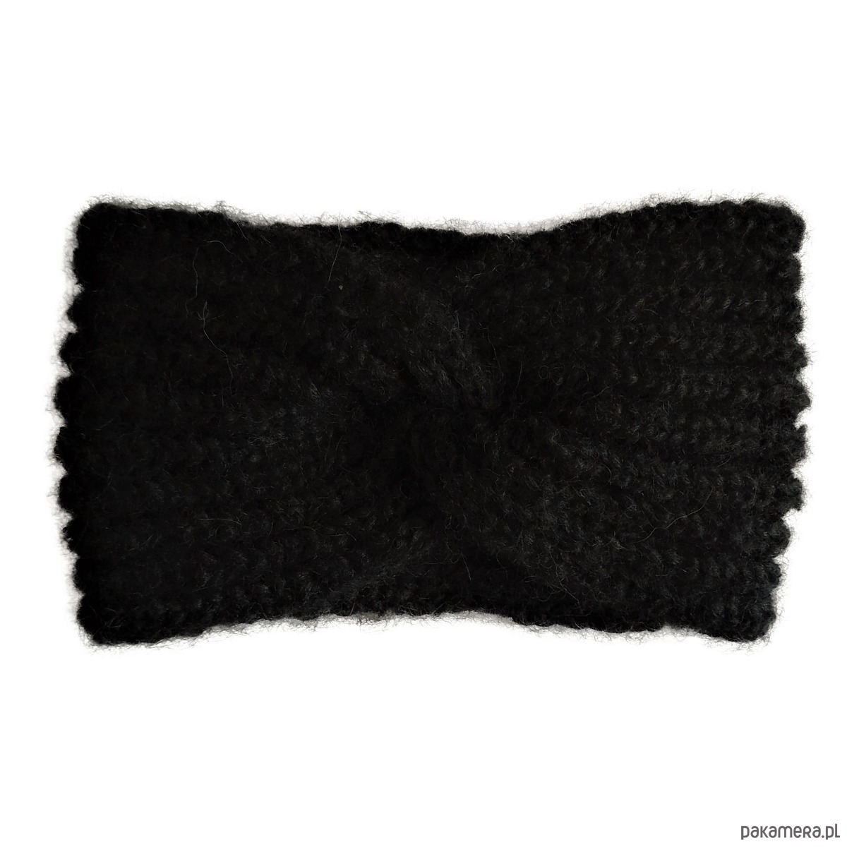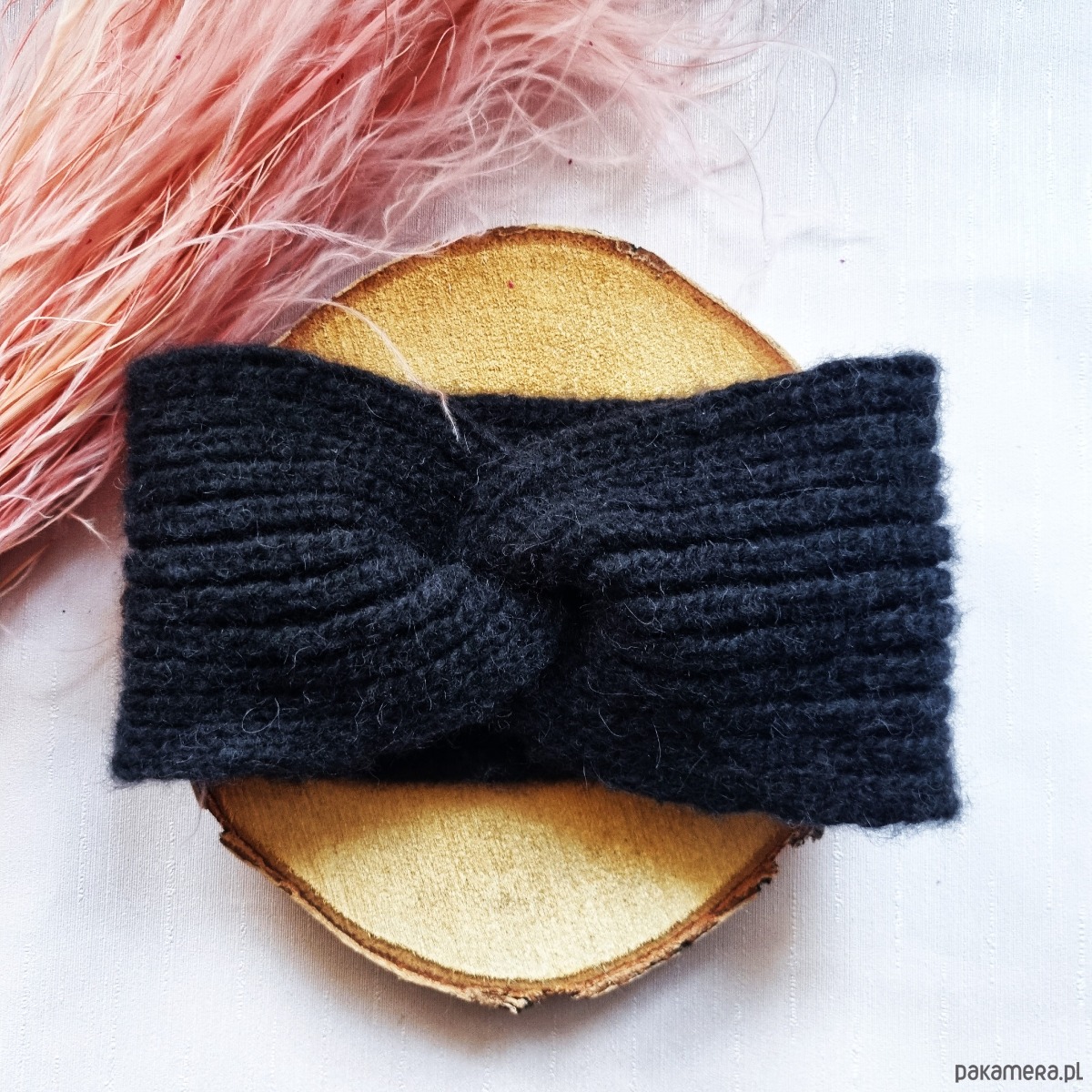 Wełniana opaska handmade z alpaki i merino, miękka, ciepła, czarna