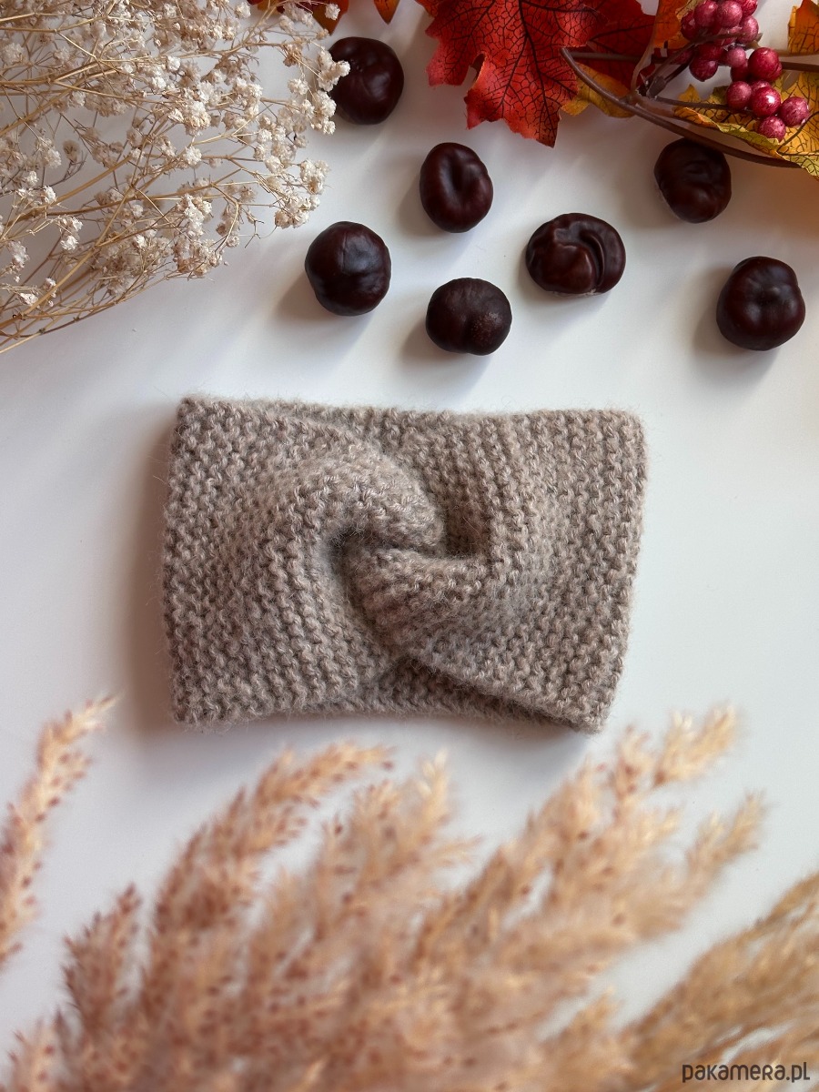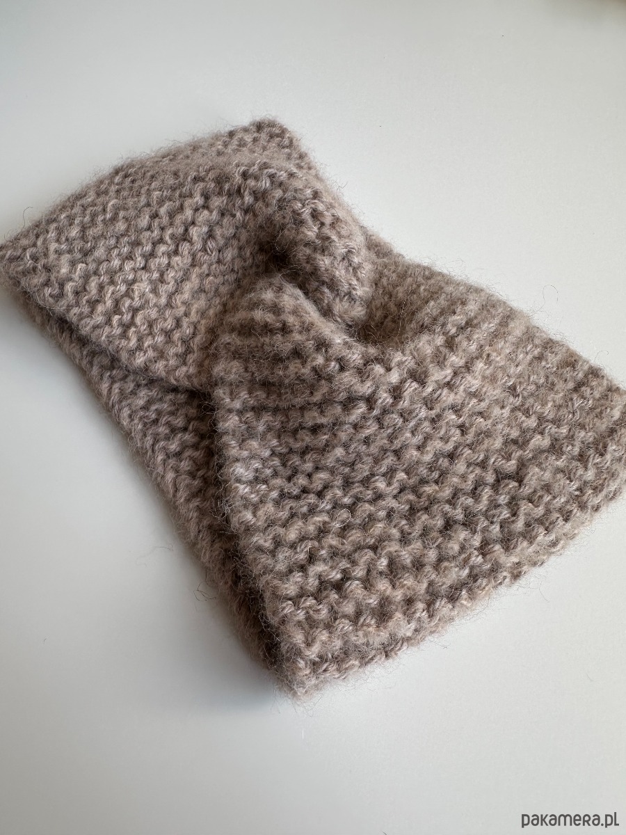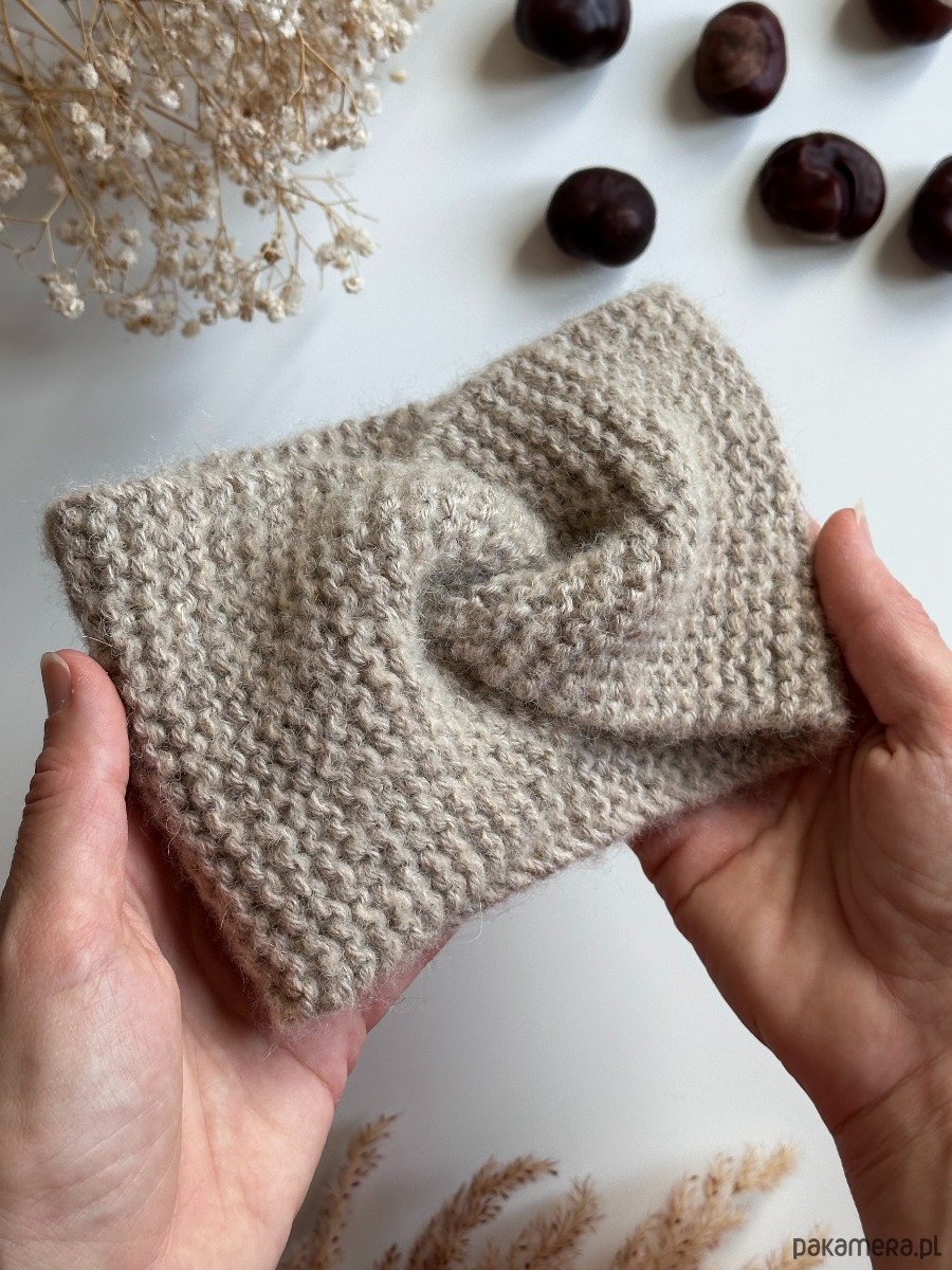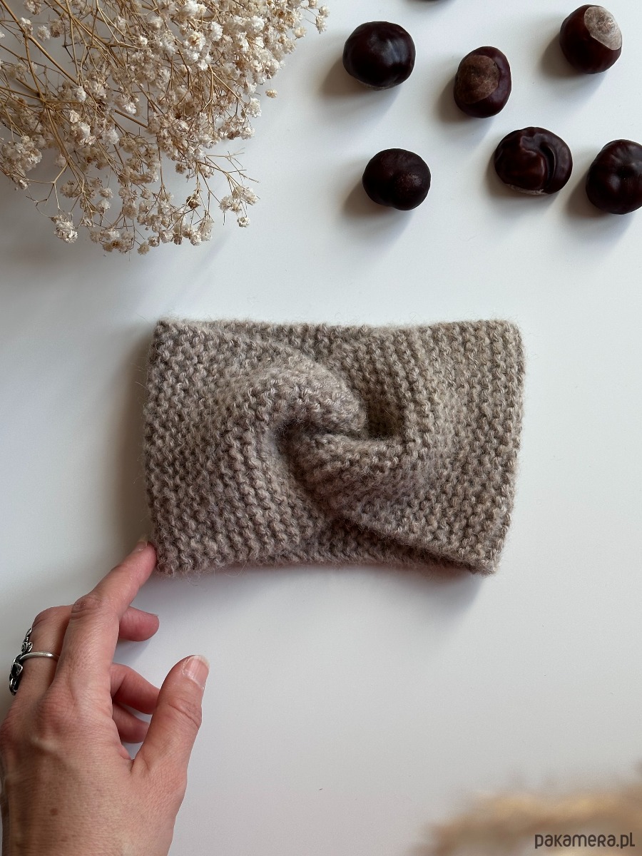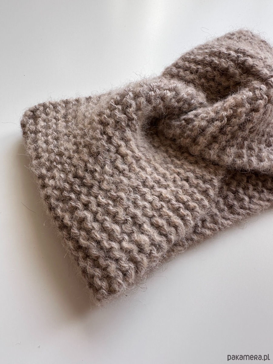 Opaska wełniana, wykonana ręcznie na drutach, w całości (100%) z naturalnej wełny alpaki.