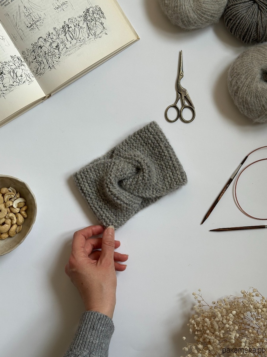 Opaska twist wykonana jest ręcznie na drutach z naturalnej włóczki, składającej się w 100% z wełny alpaki.