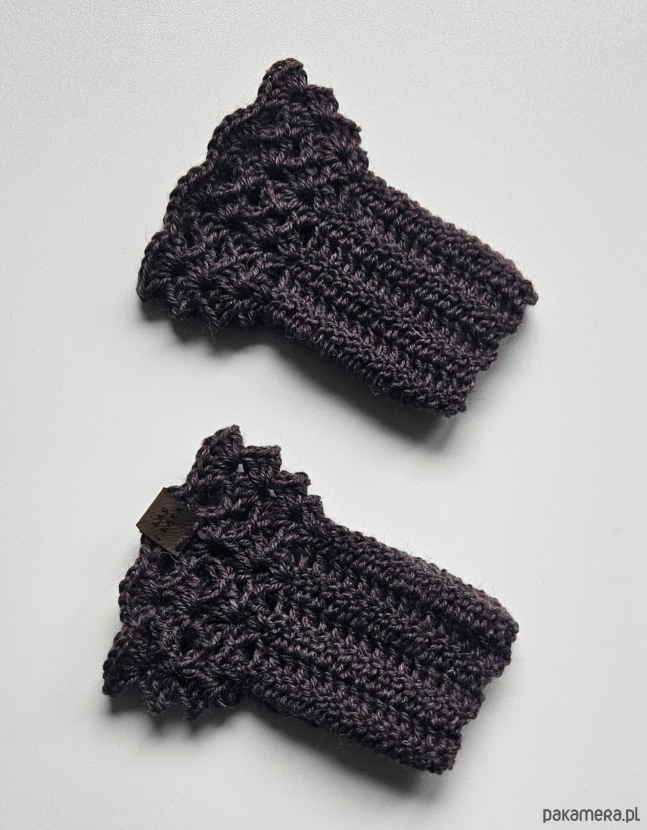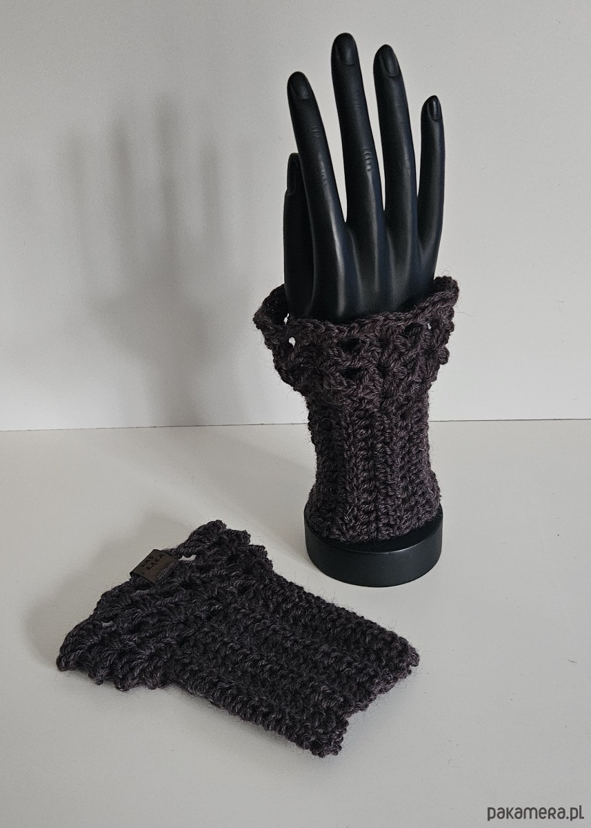 Ręcznie wykonane mankiety z miękkiej wełny. Ogrzewają nadgarstki, a jednocześnie zostawiają palce wolne, dzięki czemu są bardzo wygodne na co dzień.
