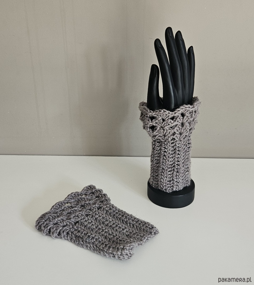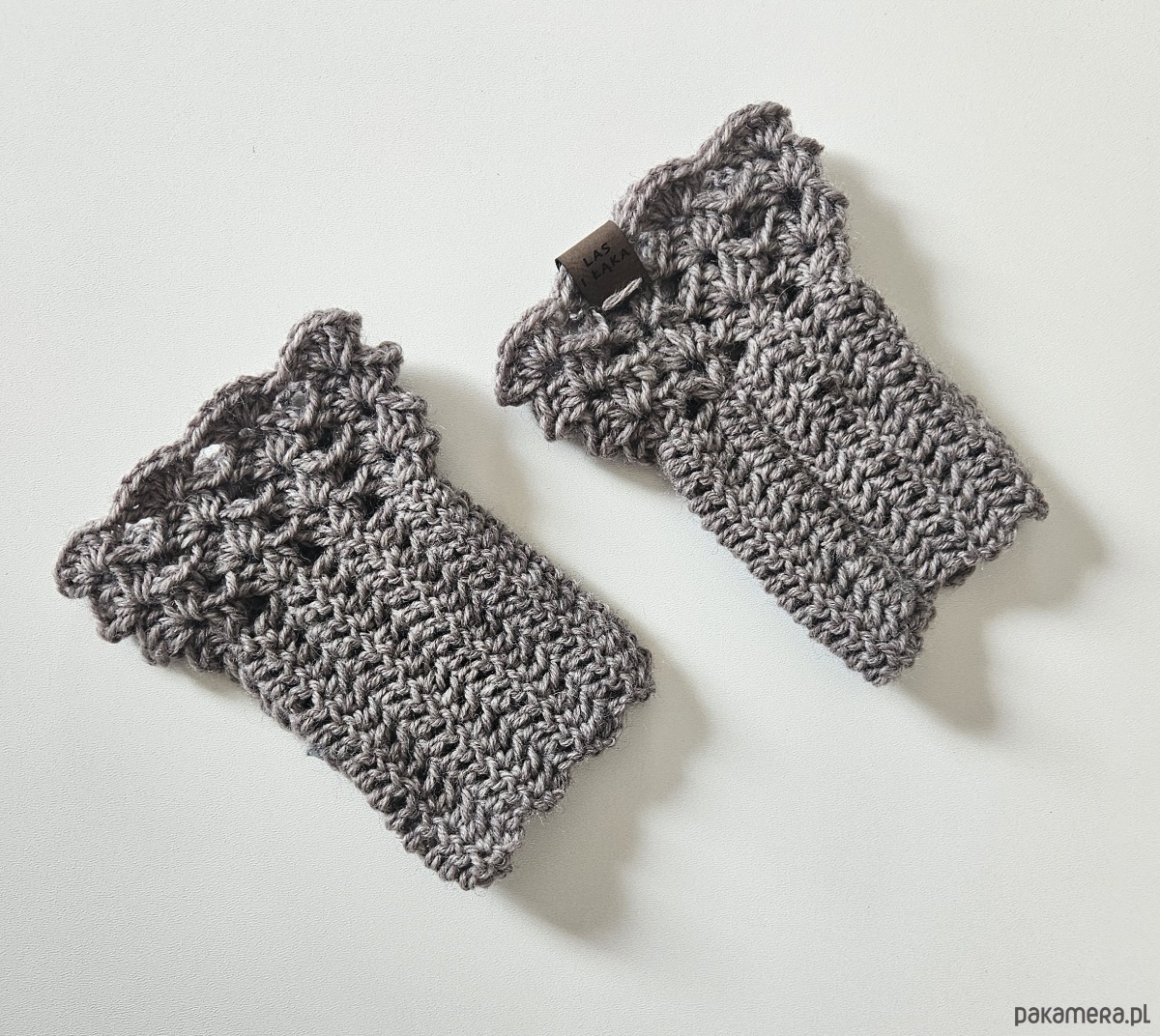Ręcznie wykonane mankiety z miękkiej wełny. Ogrzewają nadgarstki, a jednocześnie zostawiają palce wolne, dzięki czemu są bardzo wygodne na co dzień.