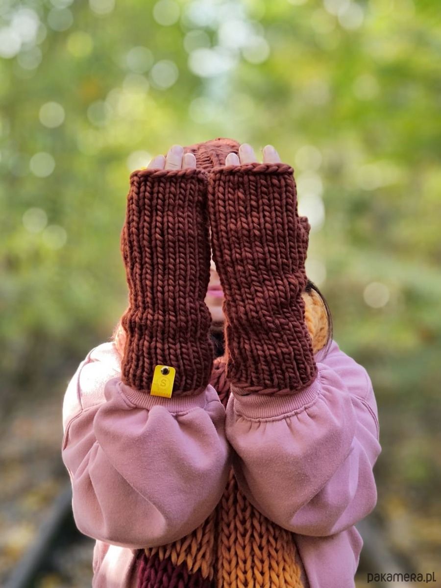 Wełniane mitenki z wełny peruwiańskiej WOOLY rudy brąz
