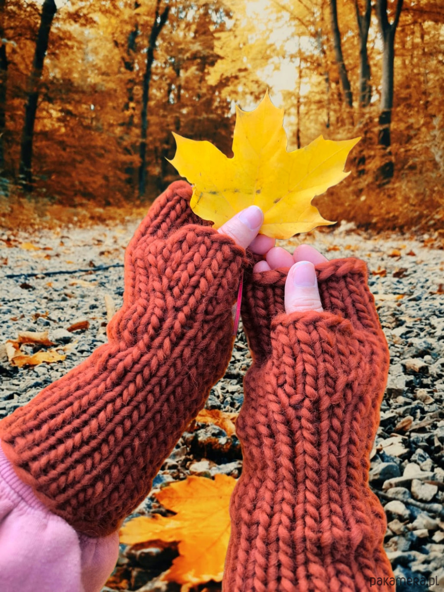 Wełniane mitenki z wełny peruwiańskiej WOOLY terakota