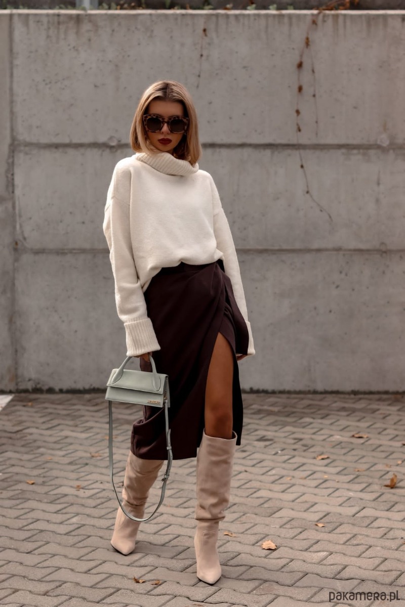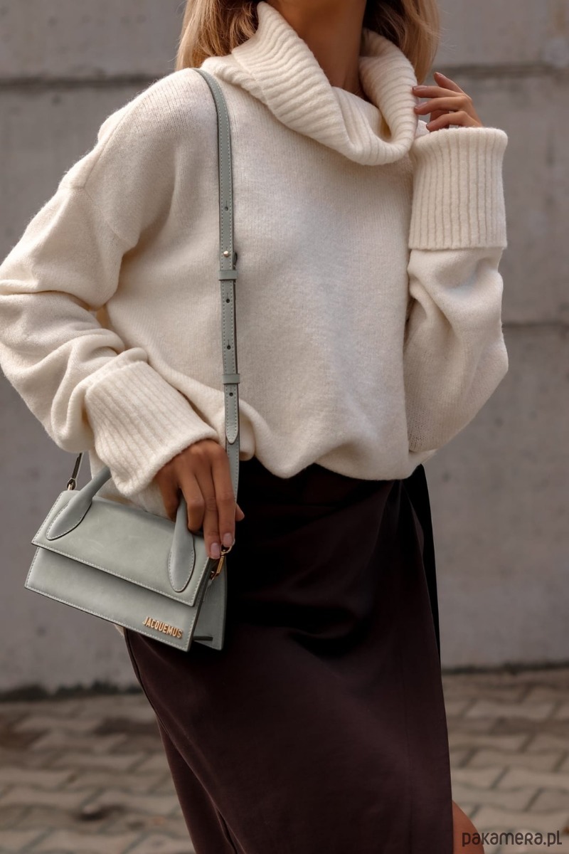Golf w modnym KREMOWYM kolorze. WEŁNA to naturalne włókno cenione z uwagi na to, że izoluje ciepło, nie powoduje alergii i wchłania wilgoć z otoczenia. Ubrania uszyte z wełny charakteryzują się sprężystością i są odporne na zagniecenia.