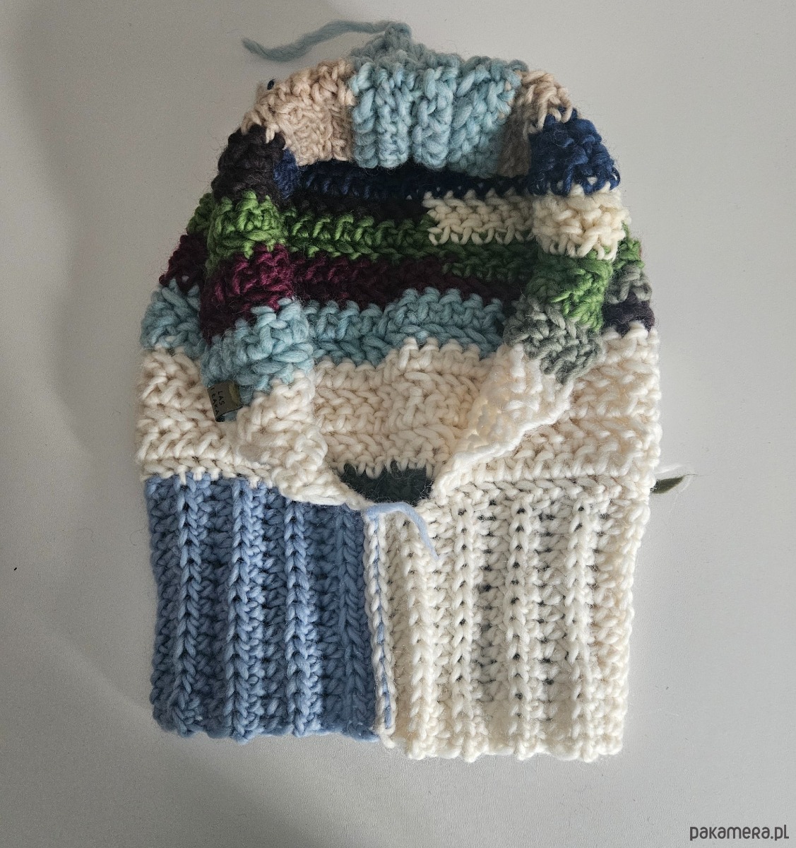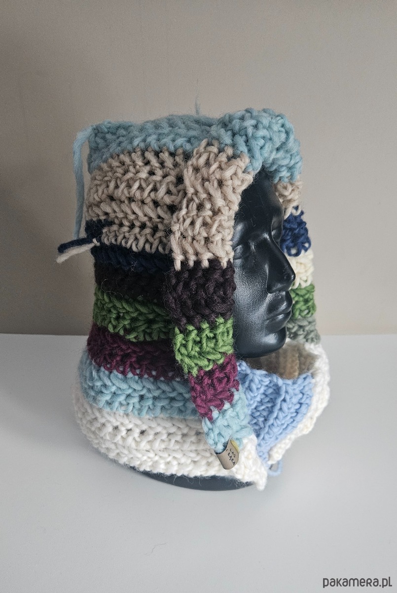Wyjątkowy, ręcznie szydełkowany kaptur–komin wykonany w całości z naturalnej wełny. Ciepły, miękki i niepowtarzalny – powstał z połączenia wielu kolorów, które tworzą energetyczną, artystyczną całość. Każdy egzemplarz ma swój indywidualny charakter – nie ma dwóch identycznych!