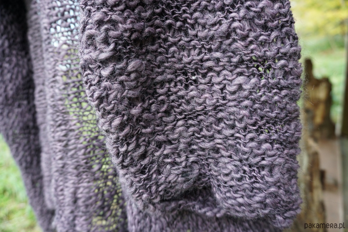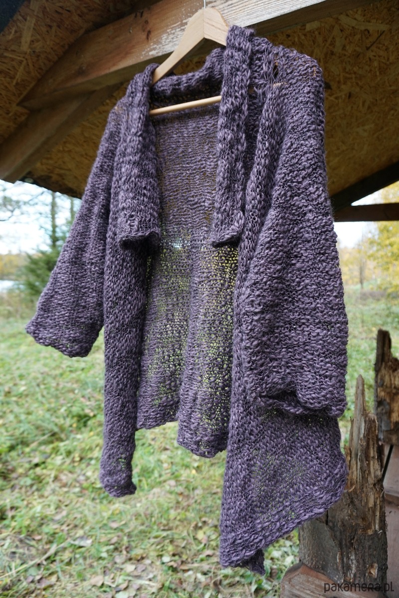 Wełniany kardigan oversize w śliwkowo-fioletowych odcieniach, lekki i ciepły