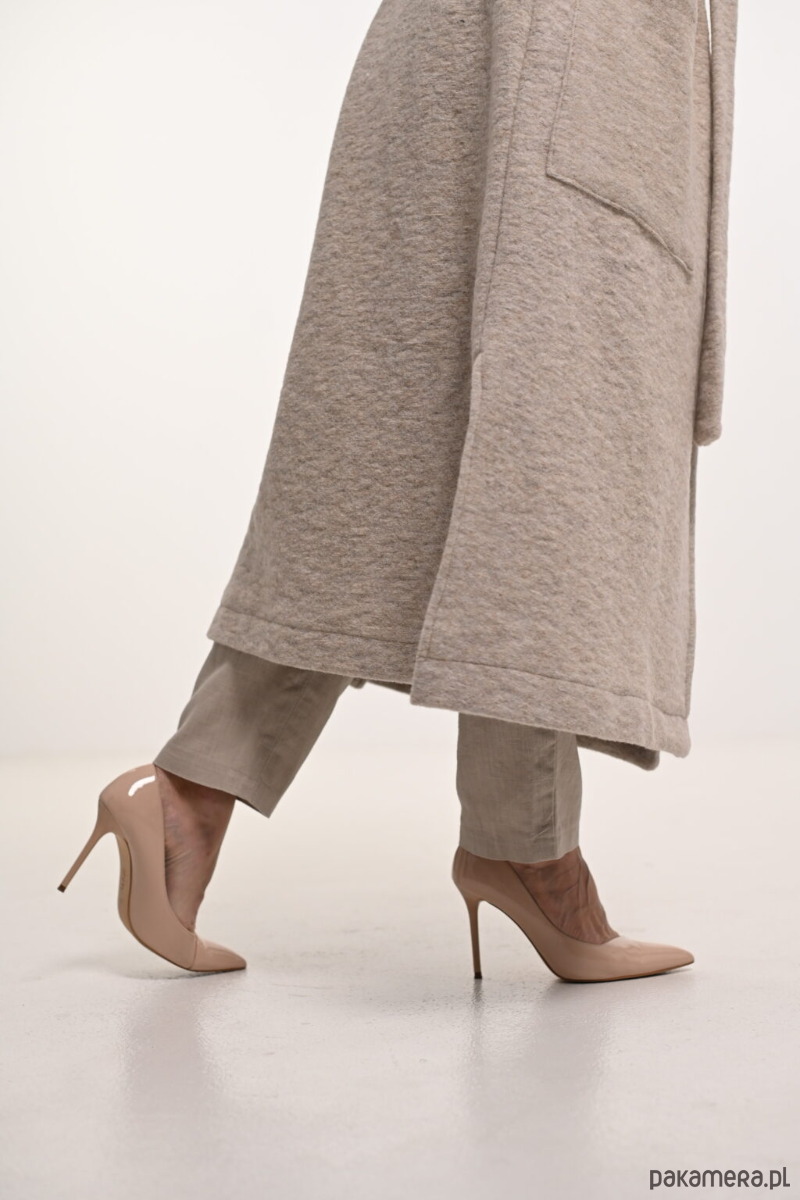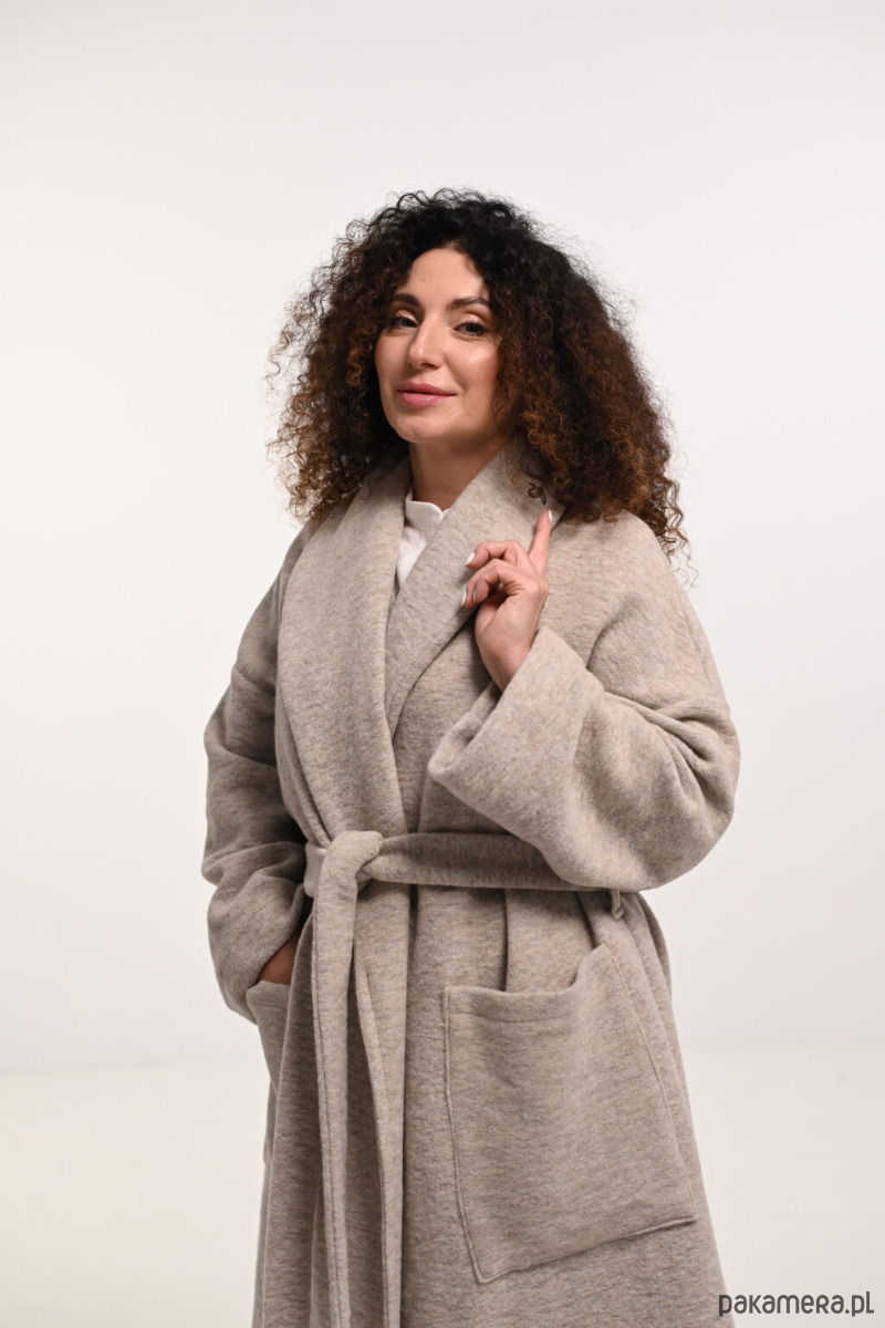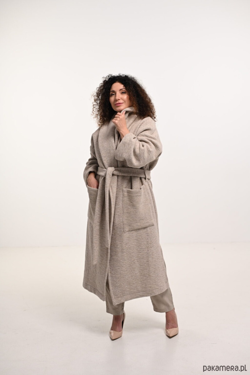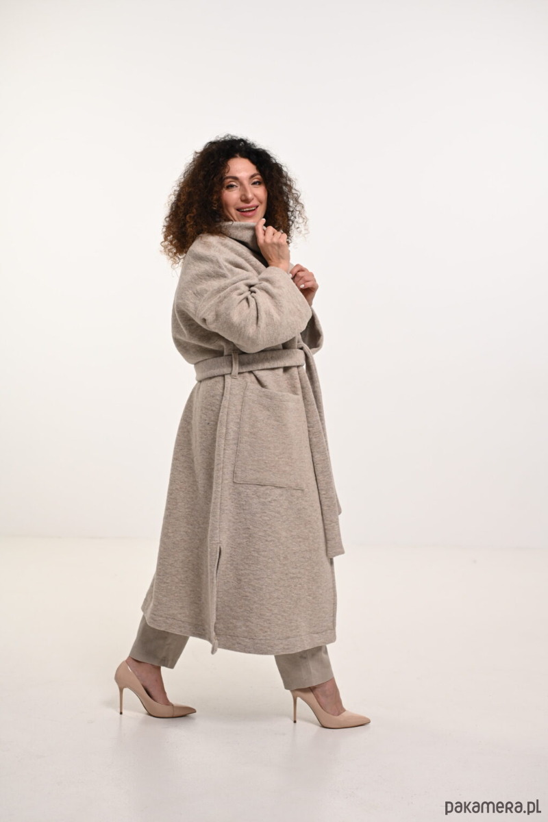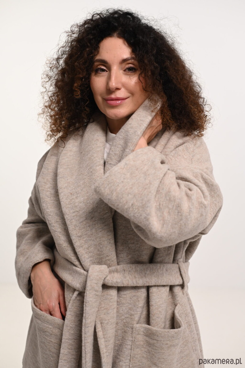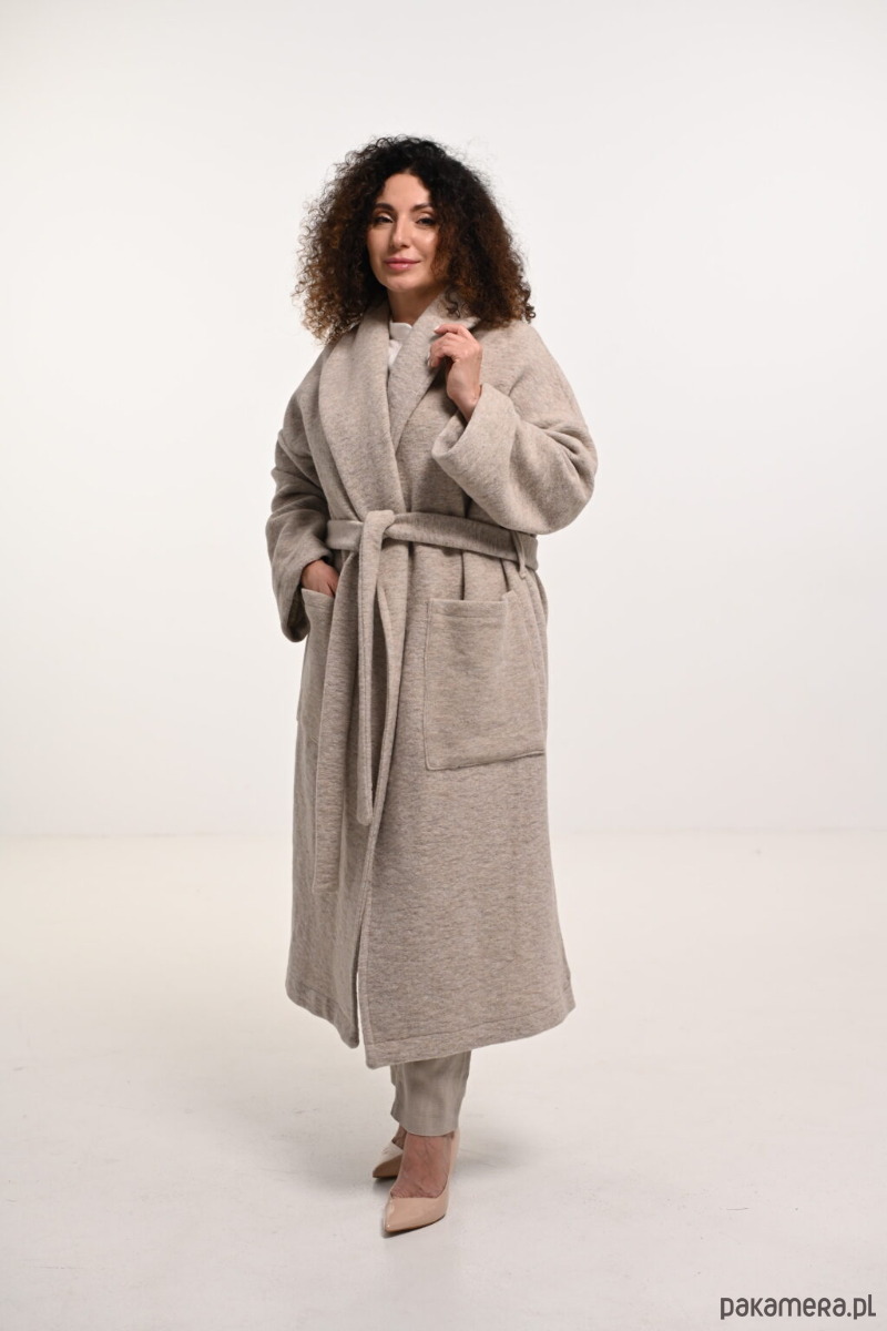 Prezentujemy płaszcz wykonany w 100% z wełny w runie, który będzie Twoim wiernym towarzyszem w chłodniejsze dni.