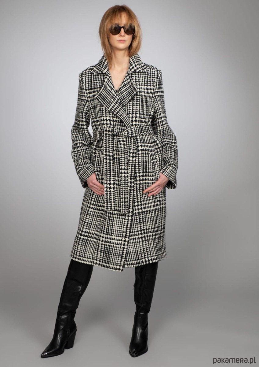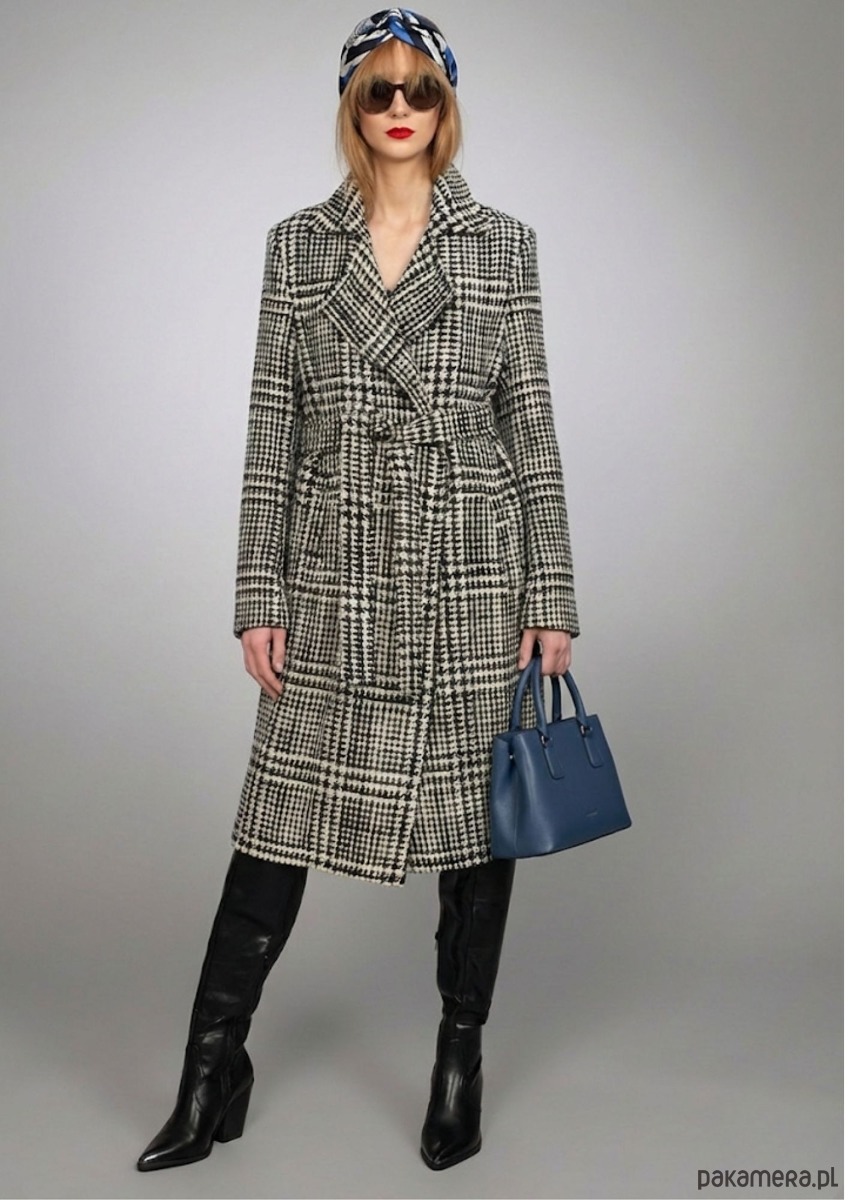 Styl, który przyciąga spojrzenia – płaszcz w kratkę to klasyka z pazurem. Piękna wełna, szlafrokowy krój i pasek podkreślający talię tworzą look, który łączy wygodę z elegancją.