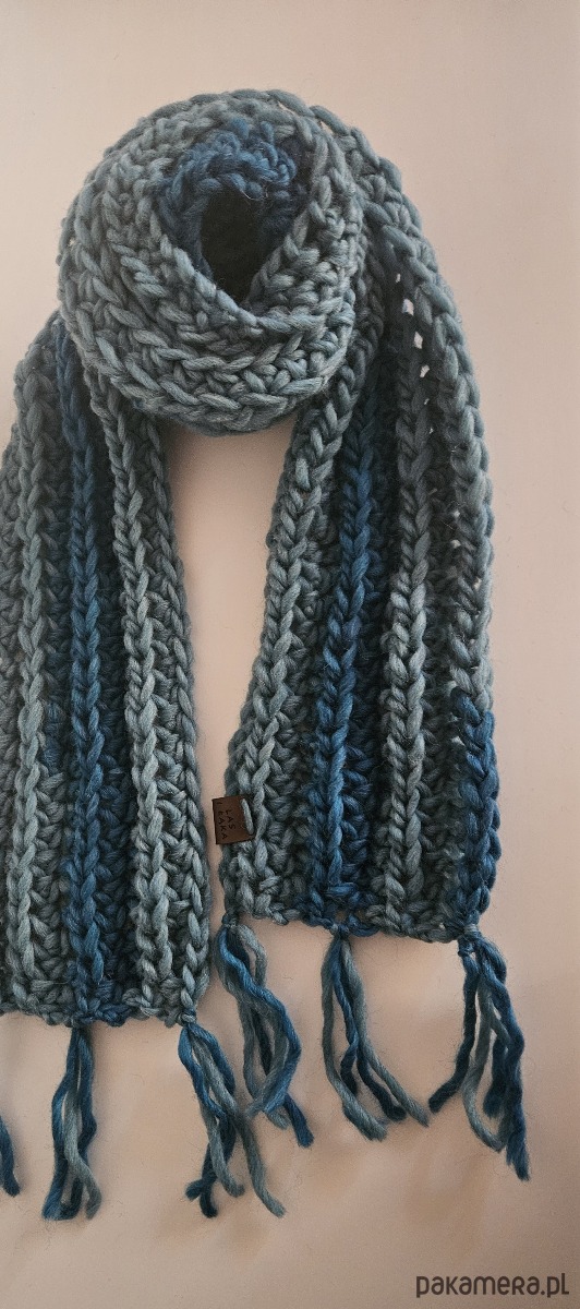 Ręcznie wykonany szal z naturalnej wełny o wyrazistej, mięsistej fakturze. Gruby splot nadaje mu wyjątkowy charakter i sprawia, że doskonale chroni przed chłodem. Miękki, elastyczny i niezwykle przytulny – otuli Cię w chłodne poranki i wieczory. Idealny dla osób, które cenią rękodzieło i niepowtarzalne dodatki tworzone z sercem. Każdy egzemplarz to unikatowy wyrób o własnym charakterze.