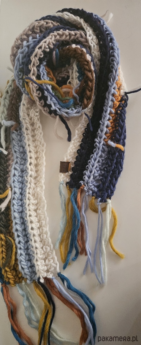 Ręcznie wykonany szal z naturalnej wełny o wyrazistej, mięsistej fakturze. Gruby splot nadaje mu wyjątkowy charakter i sprawia, że doskonale chroni przed chłodem. Miękki, elastyczny i niezwykle przytulny – otuli Cię w chłodne poranki i wieczory. Idealny dla osób, które cenią rękodzieło i niepowtarzalne dodatki tworzone z sercem. Każdy egzemplarz to unikatowy wyrób o własnym charakterze.