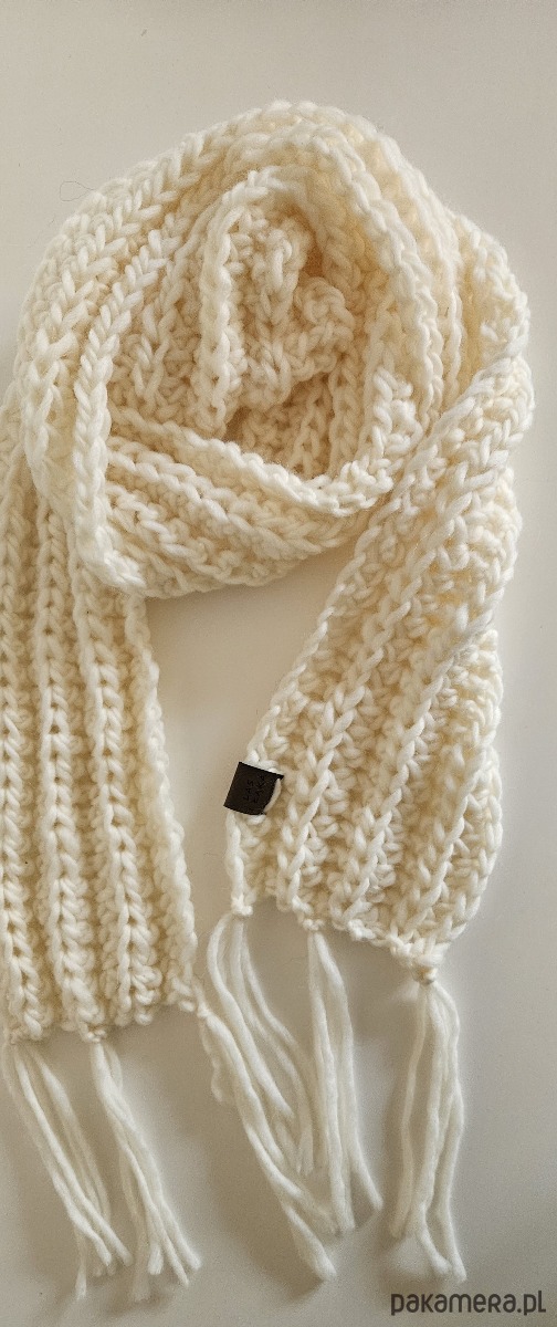 Ręcznie wykonany szal z naturalnej wełny o wyrazistej, mięsistej fakturze. Gruby splot nadaje mu wyjątkowy charakter i sprawia, że doskonale chroni przed chłodem. Miękki, elastyczny i niezwykle przytulny – otuli Cię w chłodne poranki i wieczory. Idealny dla osób, które cenią rękodzieło i niepowtarzalne dodatki tworzone z sercem. Każdy egzemplarz to unikatowy wyrób o własnym charakterze.