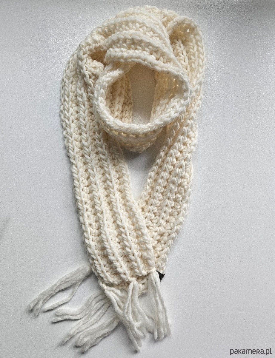 Ręcznie wykonany szal z naturalnej wełny o wyrazistej, mięsistej fakturze. Gruby splot nadaje mu wyjątkowy charakter i sprawia, że doskonale chroni przed chłodem. Miękki, elastyczny i niezwykle przytulny – otuli Cię w chłodne poranki i wieczory. Idealny dla osób, które cenią rękodzieło i niepowtarzalne dodatki tworzone z sercem. Każdy egzemplarz to unikatowy wyrób o własnym charakterze.