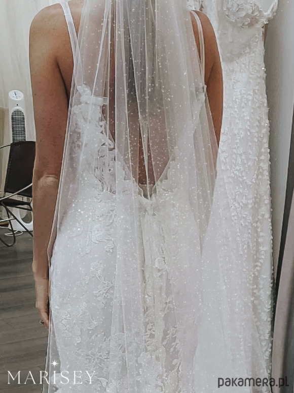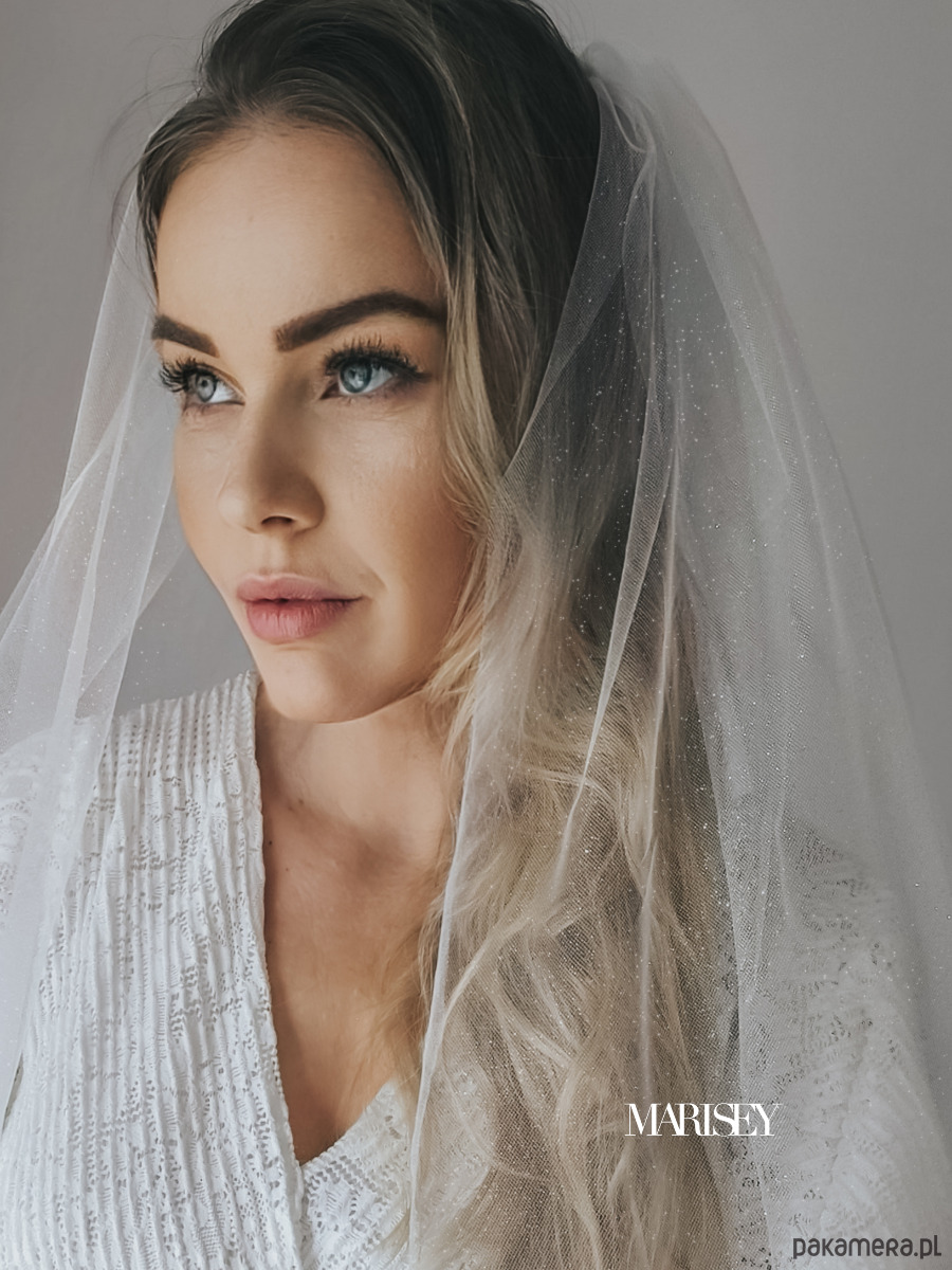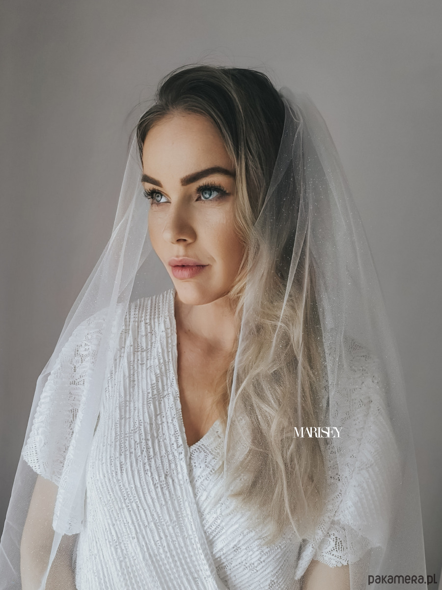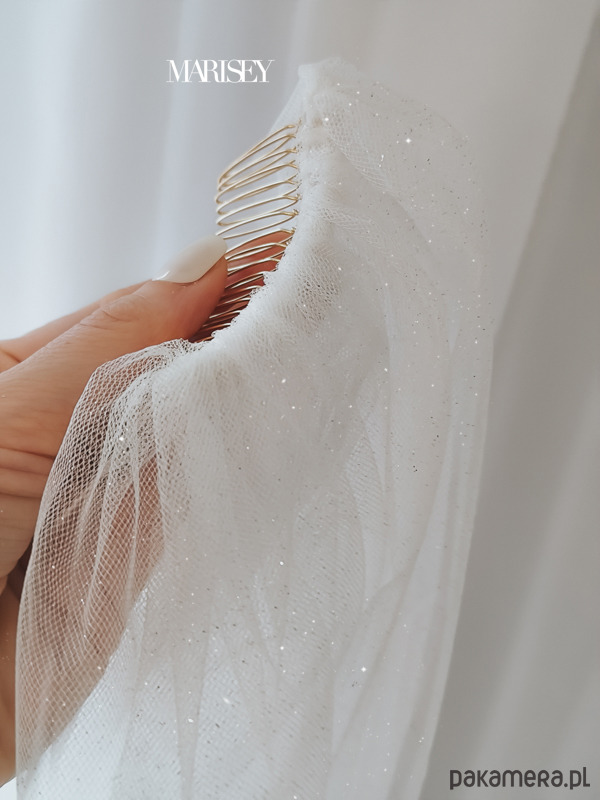 Piękny welon z brokatem / brokatowy jednowarstwowy. Lekki welon z bardzo delikatną brokatową aplikacją idealnie sprawdzi się do sukienek w stylu minimalistycznym, klasycznym i nowoczesnym.