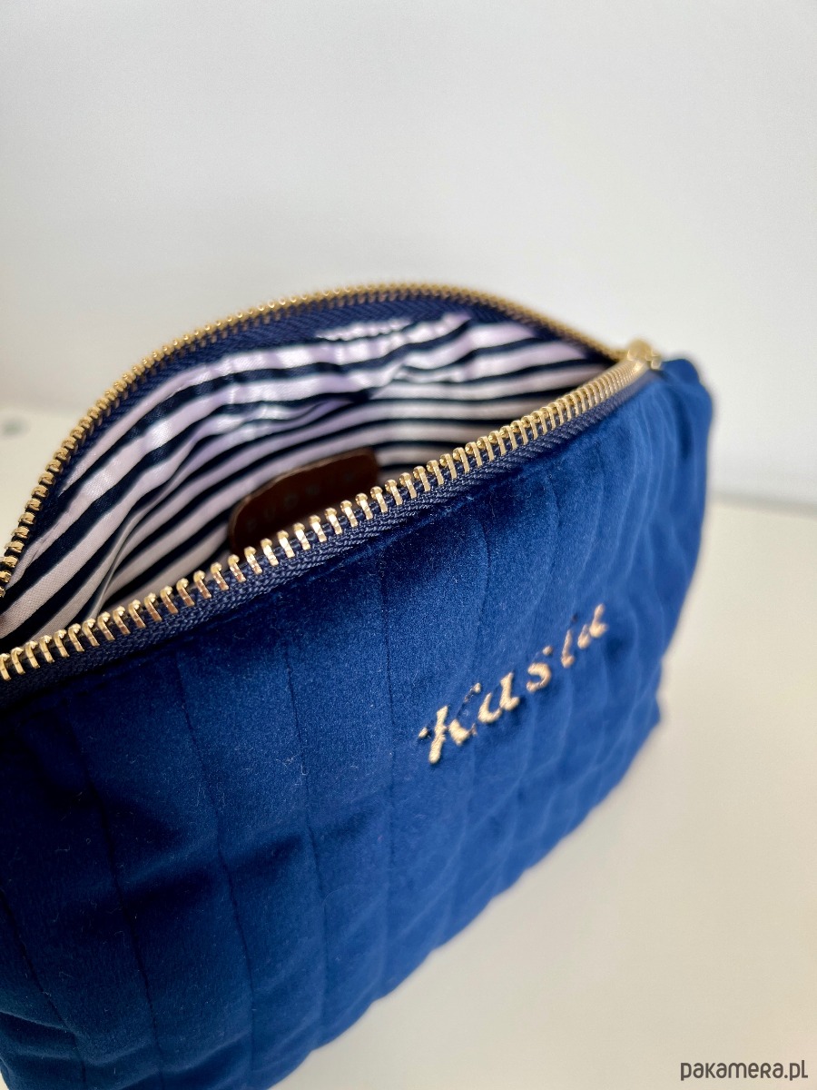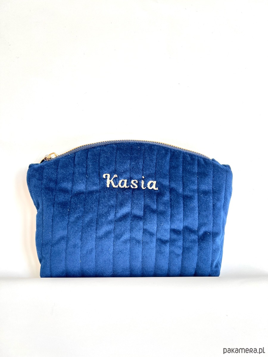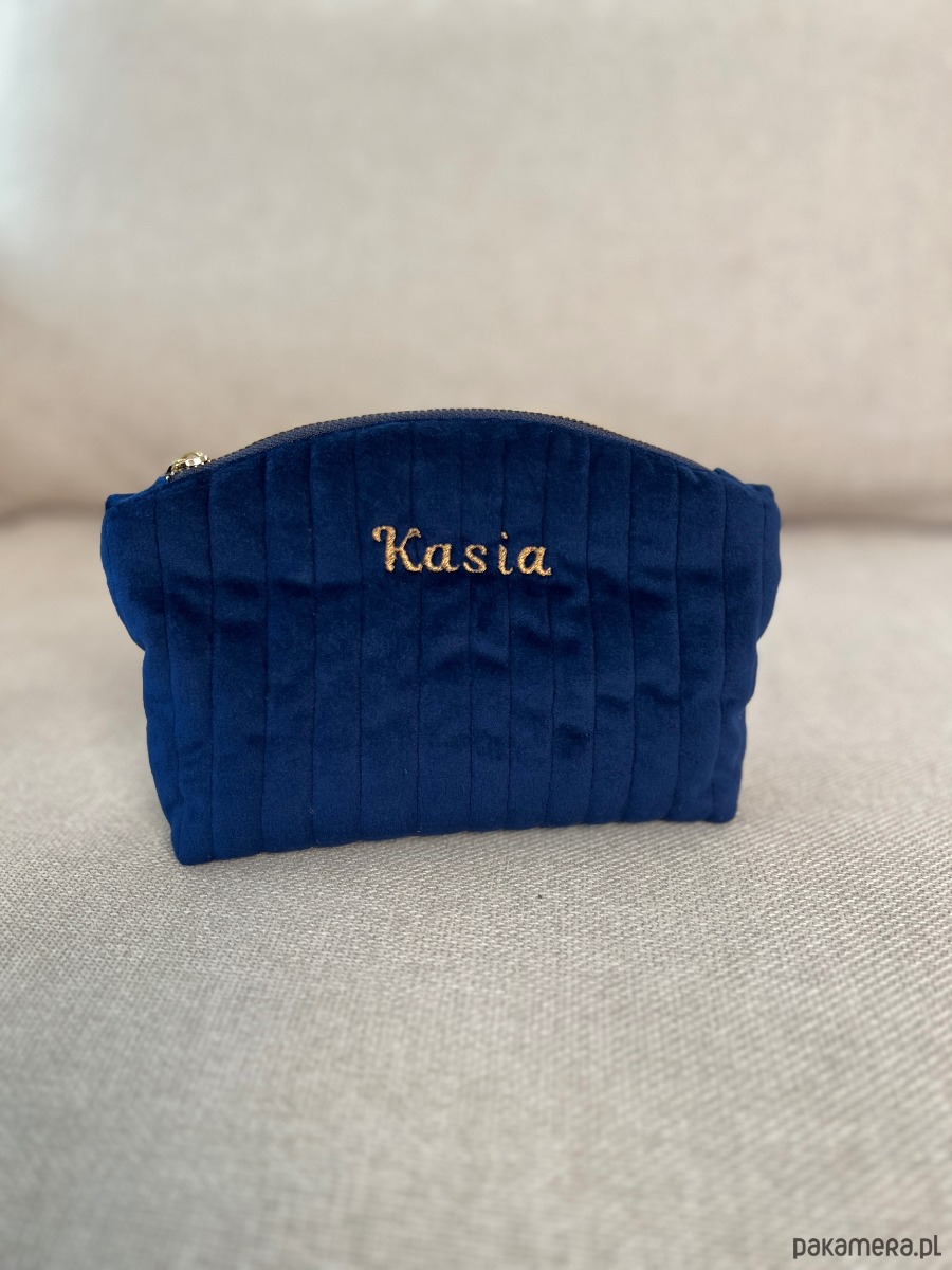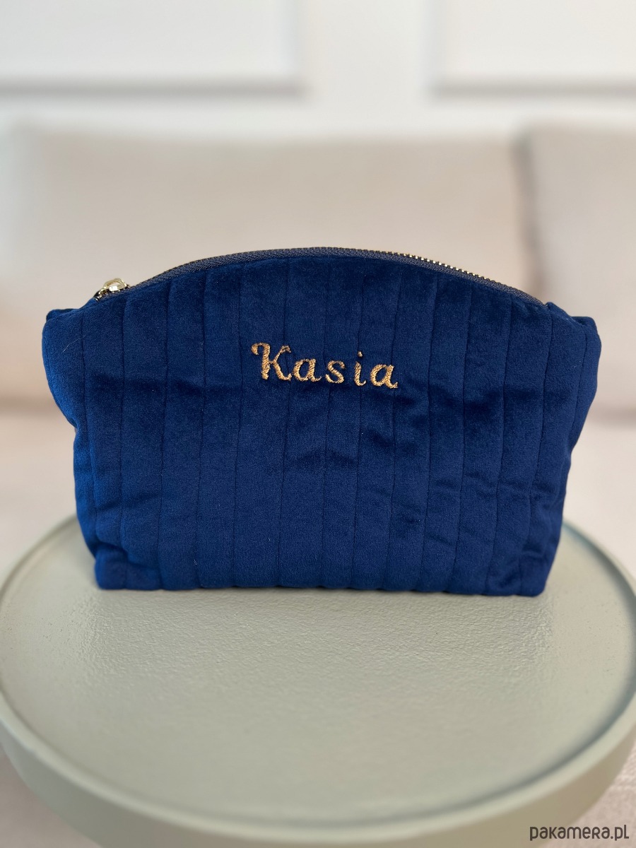 Kosmetyczka personalizowana imieniem welurowa granatowa