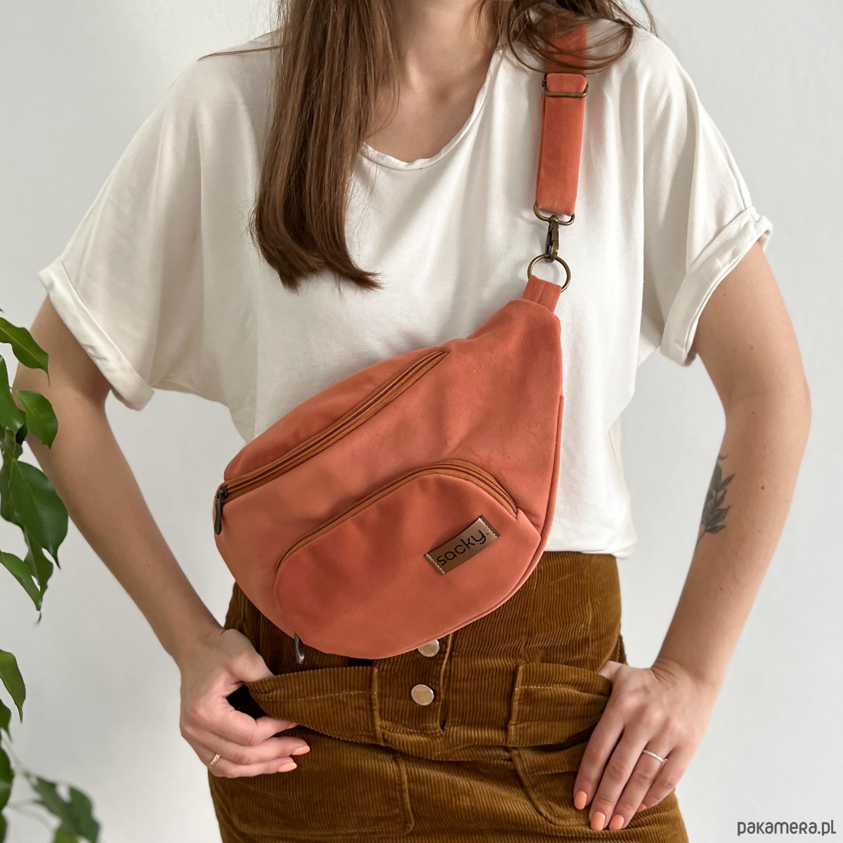 Welurowa nerka miejska morela to pojemna nerka skierowana do kobiet. Welurowa tkanina z której wykonaliśmy nerkę jest bardzo wytrzymałym i łatwym w utrzymaniu czystości materiałem. Na przodzie saszetki znajduje się kieszeń zapinana na zamek, w której możesz schować telefon. Regulowany odpinany materiałowy pasek pozwoli Ci modyfikować nerkę według Twoich potrzeb. Wewnątrz saszetka podszyta jest wodoodporną podszewką w kwiatowy wzór. Dodatkowo w środku nerki znajdziesz kieszonkę na zamek oraz karabińczyk na klucze.
