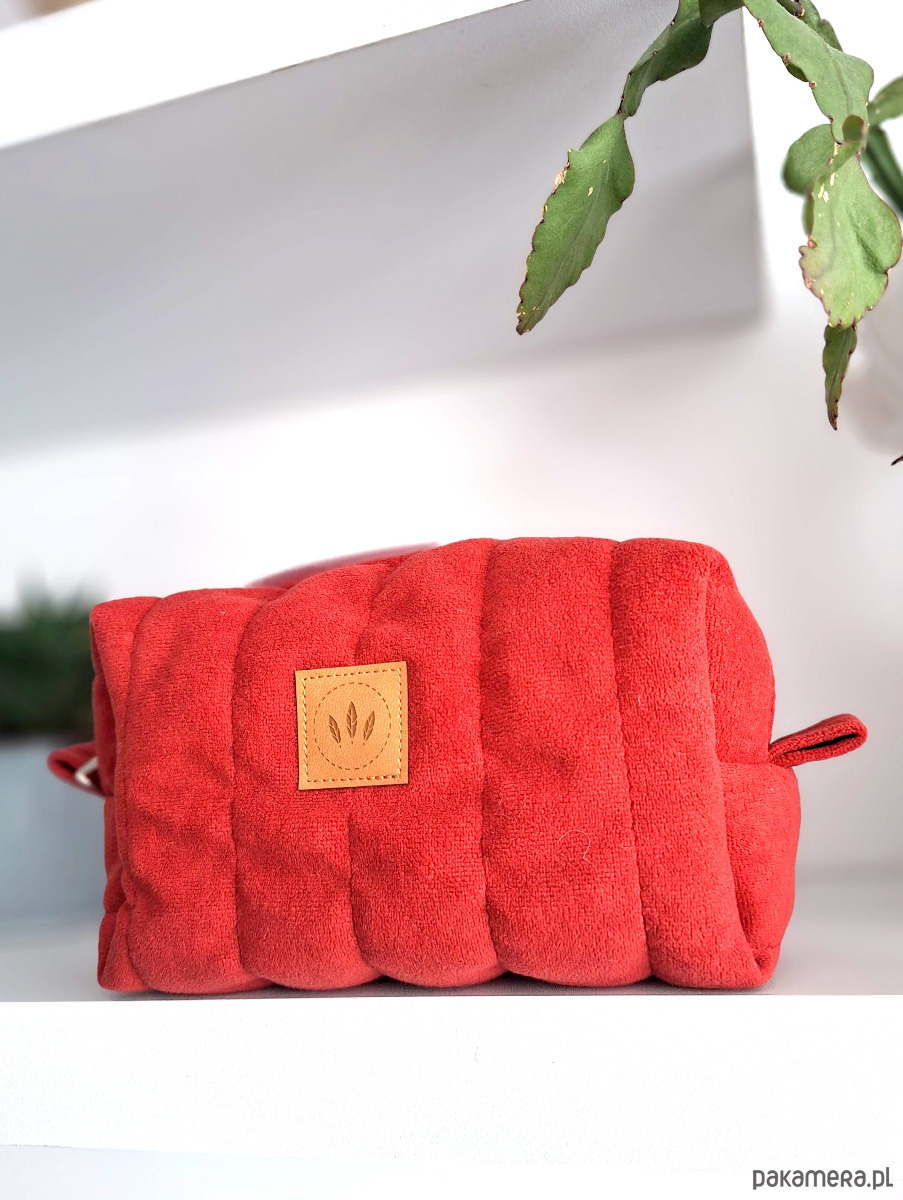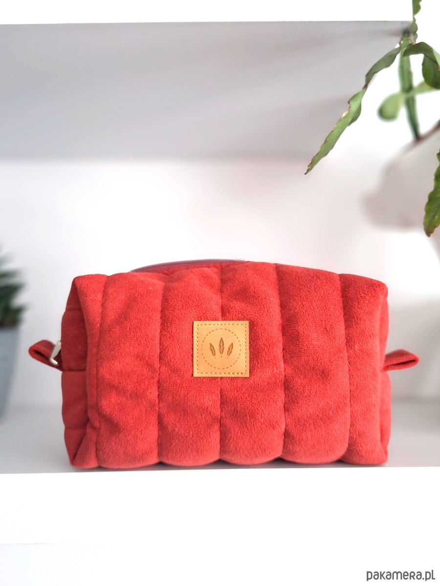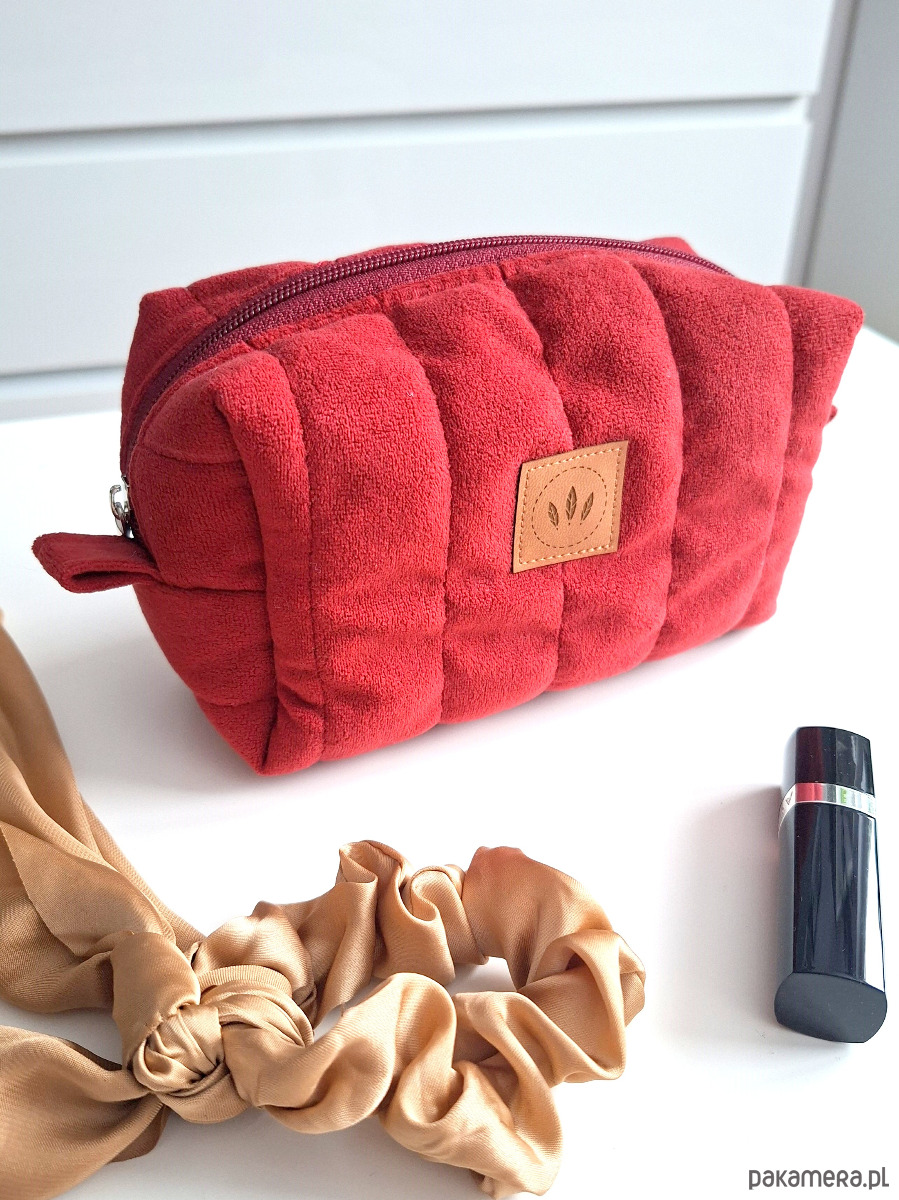 Średniej wielkości kosmetyczka pikowana na puszystej włókninie.