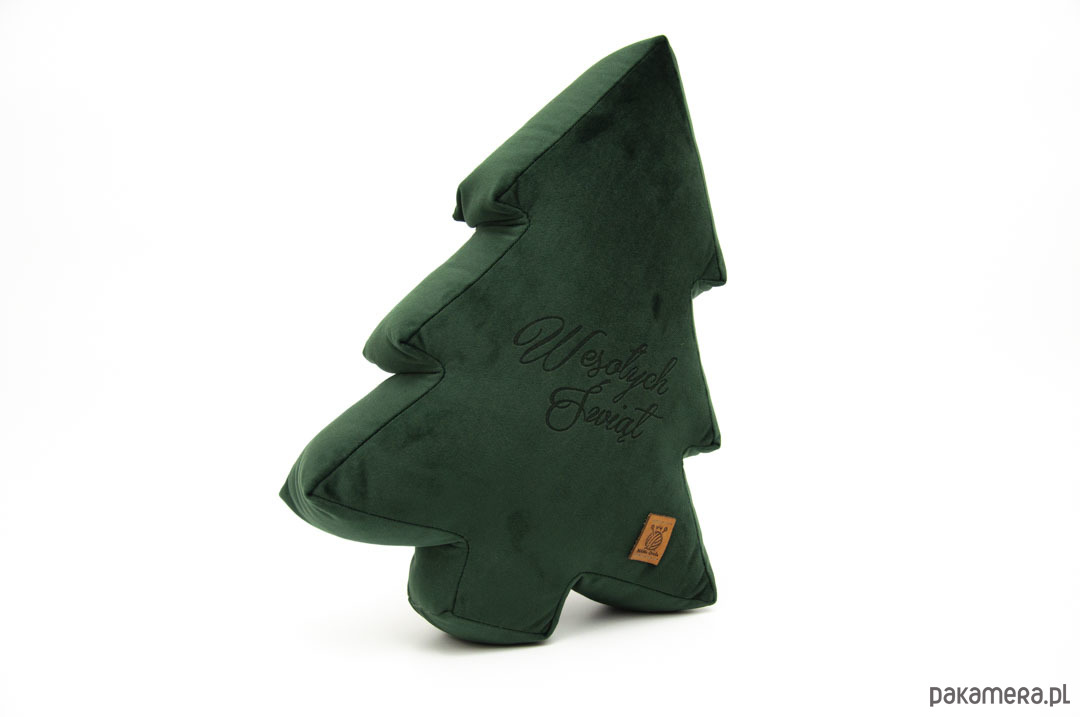 Welurowa poduszka dekoracyjna drzewko choinka z grawerem Wesołych Świąt