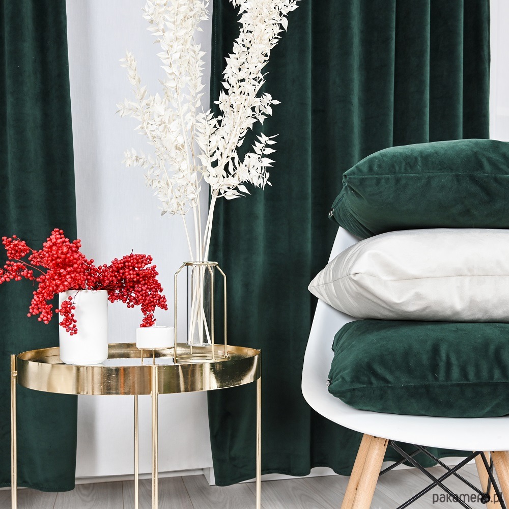 Piękna, miła w dotyku poszewka w kolorze zieleni butelkowej, na zamek. Idealnie sprawdzi się w sypialni, czy salonie.