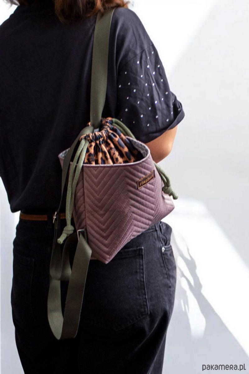 Welurowy pikowany workoplecak mini panterka