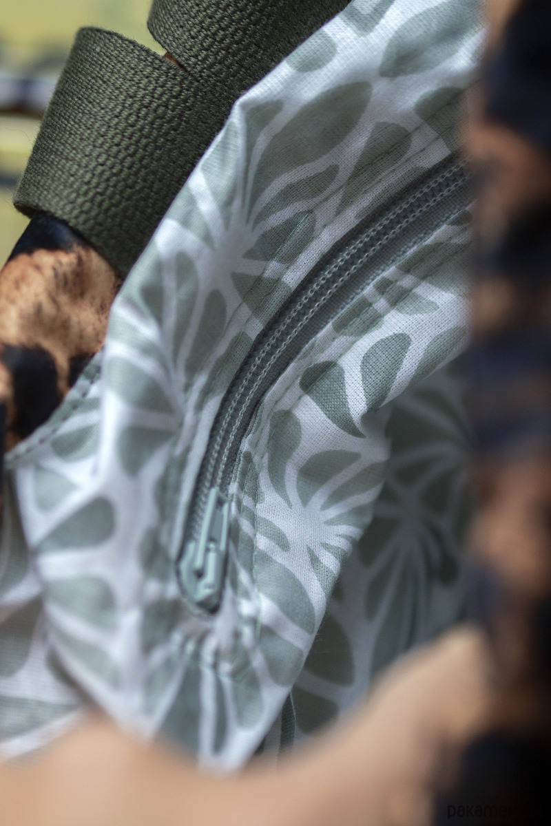Workoplecak posiada regulowane, bawełniane paski grubości 3cm w kolorze oliwkowym.