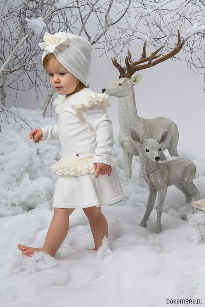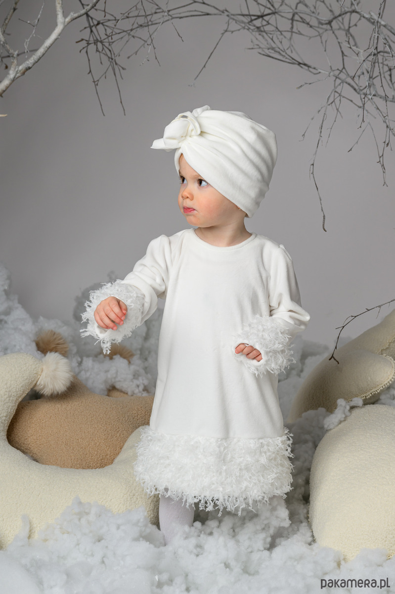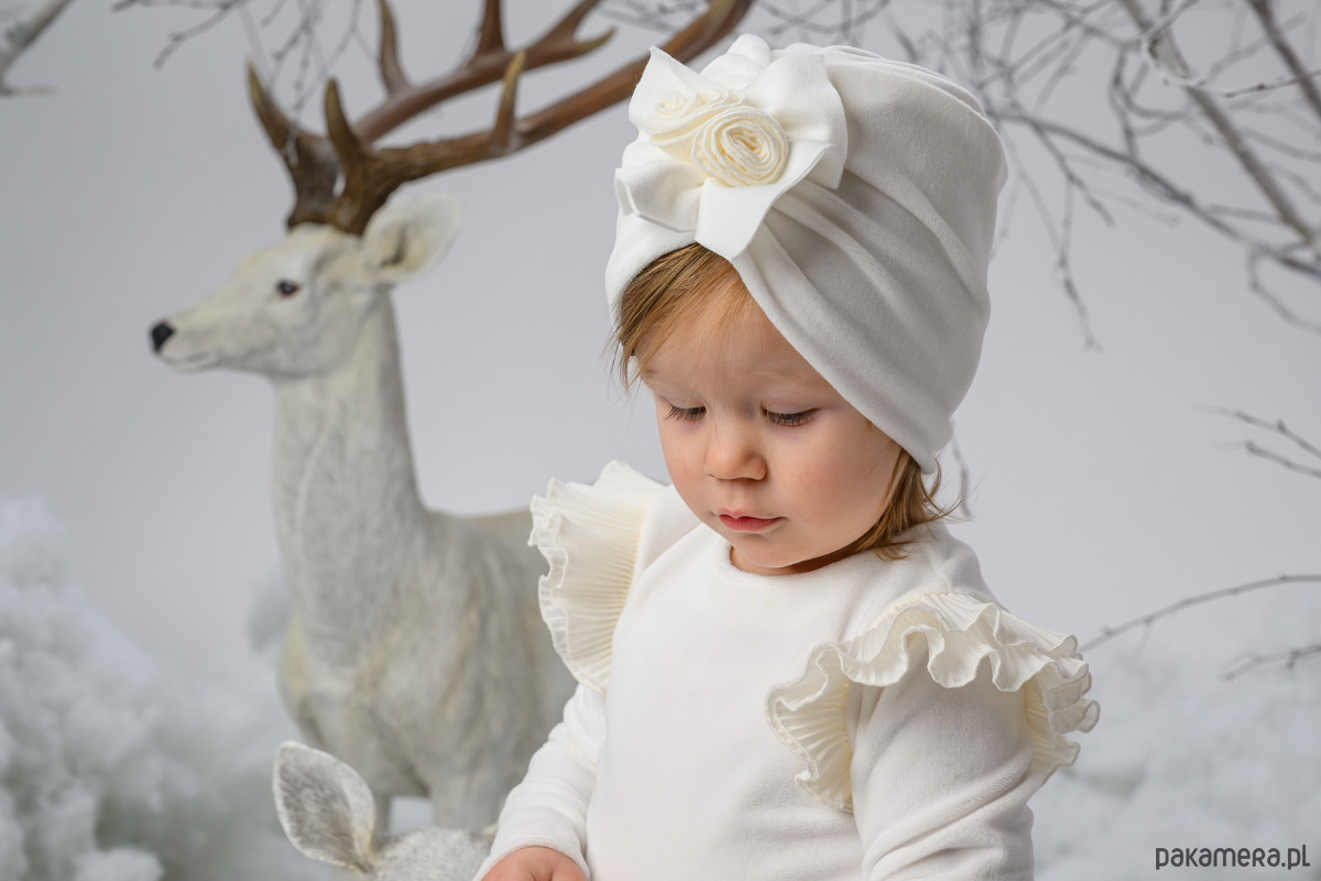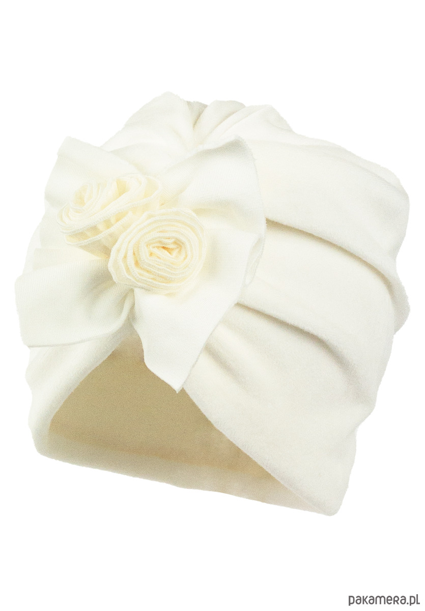 Welurowy turban ZITA dla dziewczynki na zimę ekri