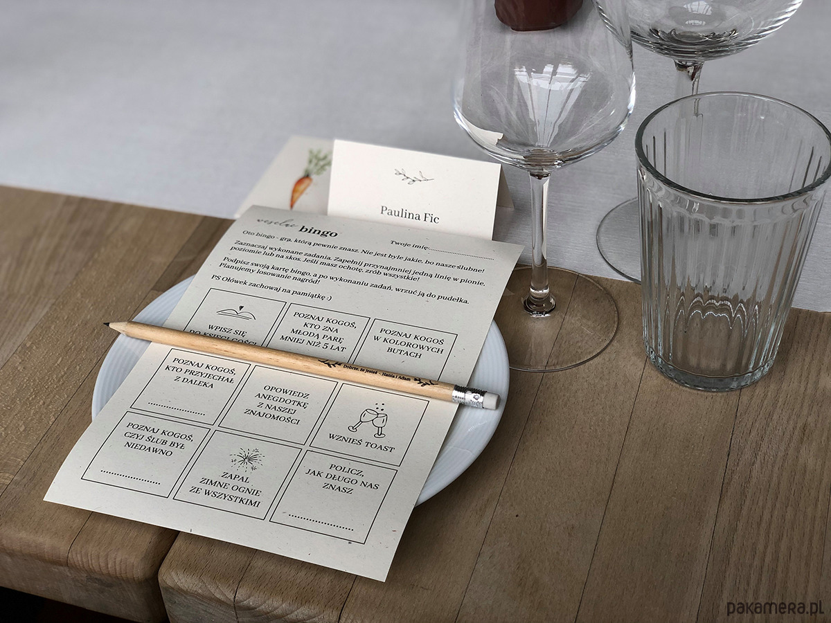 Bingo - gra, którą znamy z dzieciństwa, okazuje się być świetnym sposobem na integrację gości podczas wesela. Stwórzcie zadania dopasowane do programu Waszej uroczystości i Waszej wspólnej historii. Zadania typu "zrób coś" zachęcą bliskich do wpisania się do księgi gości, zadedykowania piosenki lub wzniesienia toastu, natomiast "poznaj" sprawią, że goście ruszą na salę przełamać pierwsze lody z nieznajomymi. Bingo weselne niewielu osobom pozwala usiedzieć na miejscu :) Przygotujcie drobne upominki, które wręczycie zapalonym graczom.