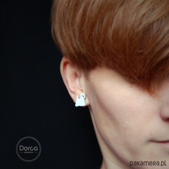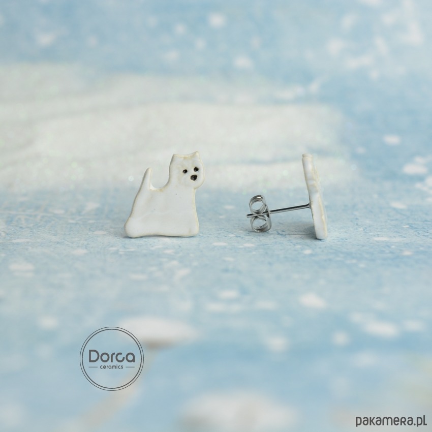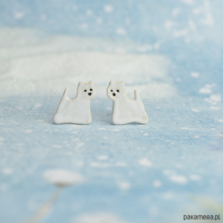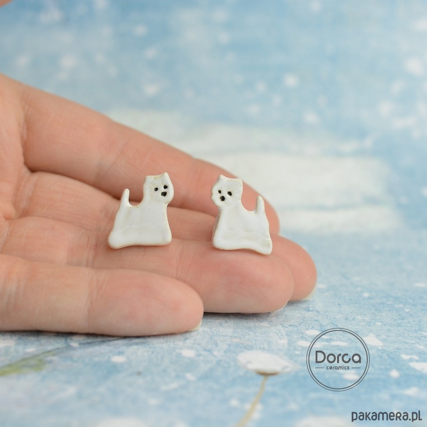 Idealne dla miłośników tej rasy:)))) Malutkie psiaki ( jedna para) białe z czarnymi oczkami i noskiem: 1,4cm wysokość, 1,4cm szerokość, 1,5mm grubość. Kolczyki wykonuję od podstaw ręcznie:) Każda para jest inna:))) Pieski zostały solidnie umocowane na sztyftach ze stali chirurgicznej- antyalergiczna w kolorze oksydowanego srebra. Wysyłam w ozdobnym pudełeczku.