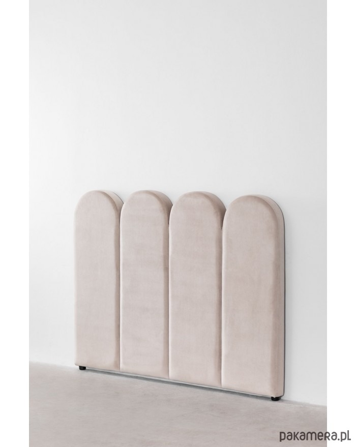 Dekoracyjne uzupełnienie sypialni. Idealnie nadaje się do tworzenia nowej, cieplejszej i przytulniejszej atmosfery, jednocześnie chroniąc i dekorując ścianę sypialni. Wezgłowie zostało wykonane z aksamitu (poliester) w kolorze. Konstrukcja wykonana z MDF. Ciekawy kształt.