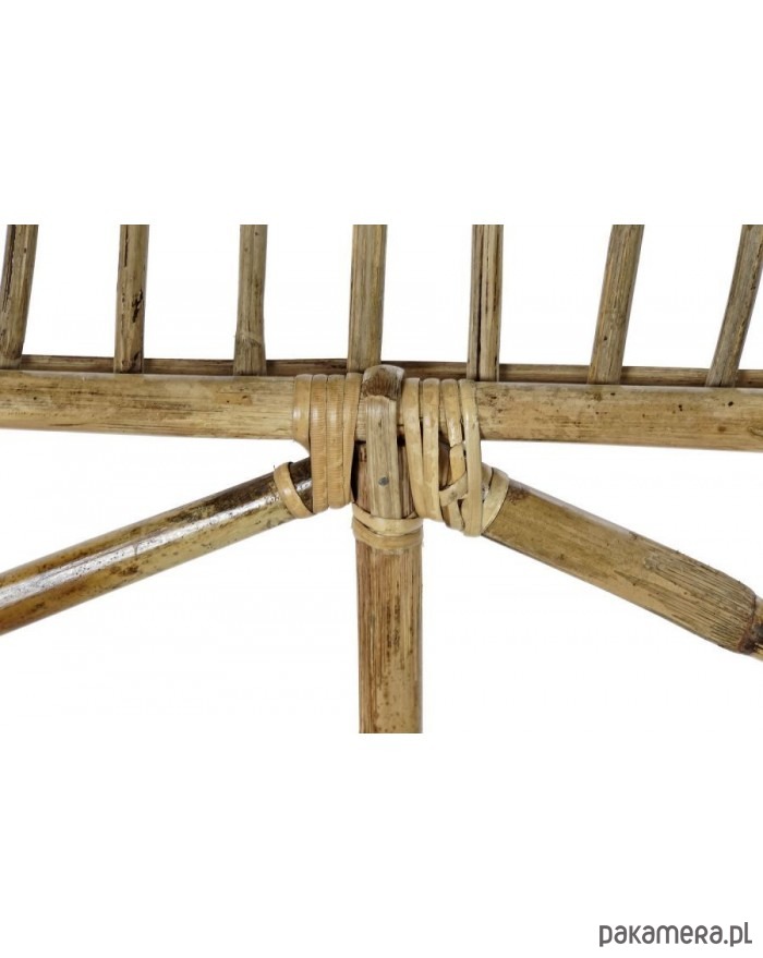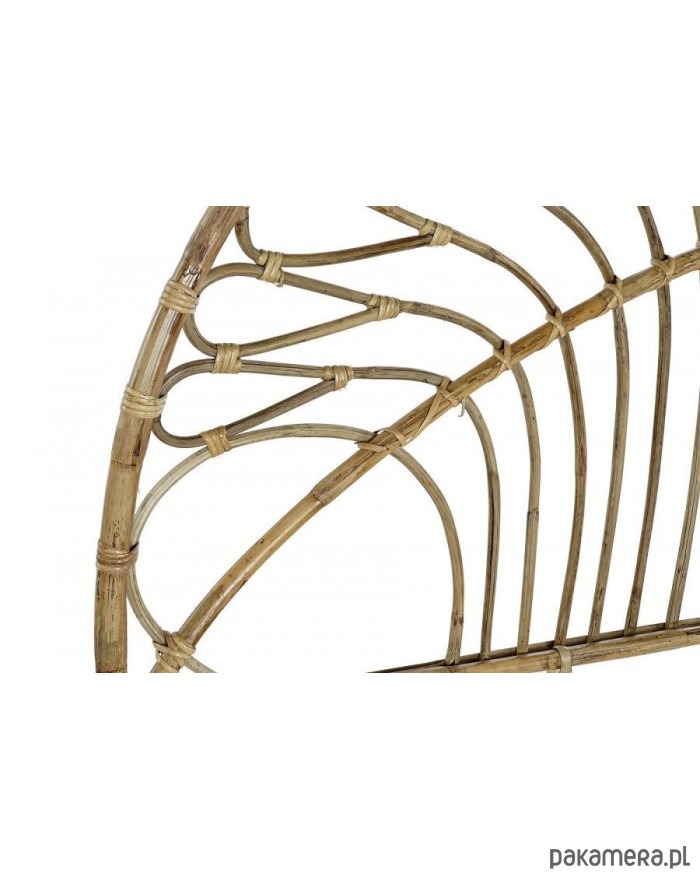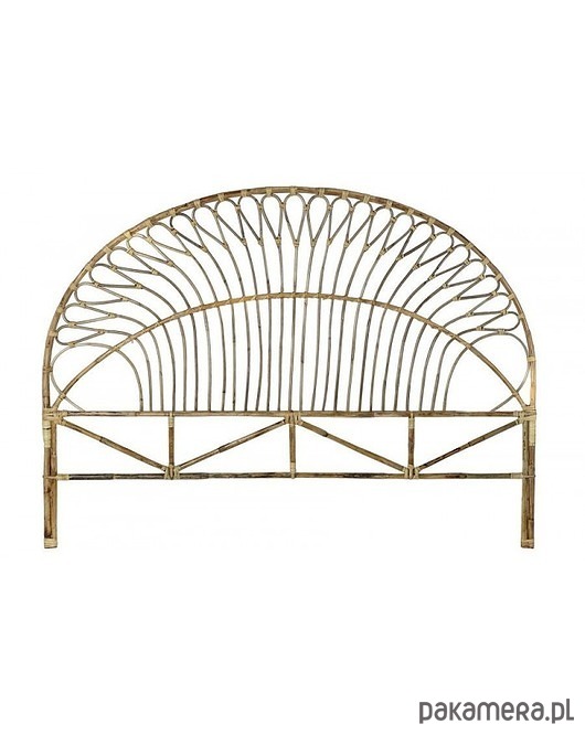 Interesujące wezgłowie rattanowe ma ramę o kształcie półokrągłym. Wzór pięknych giętych prętów przywodzi na myśl dużą liczbę baloników na sznurkach. Całość utrzymana jest w stylu boho, w kolorze naturalnym.