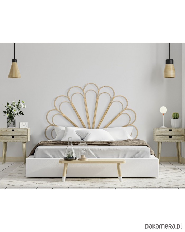 Rattanowe, ręcznie wykonane wezgłowie/zagłówek łóżka. Szerokość 160 cm. Utrzymane w kolorze naturalnym. Piękna ozdoba sypialni.