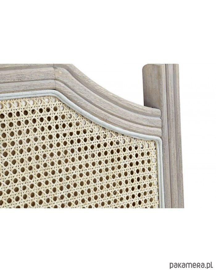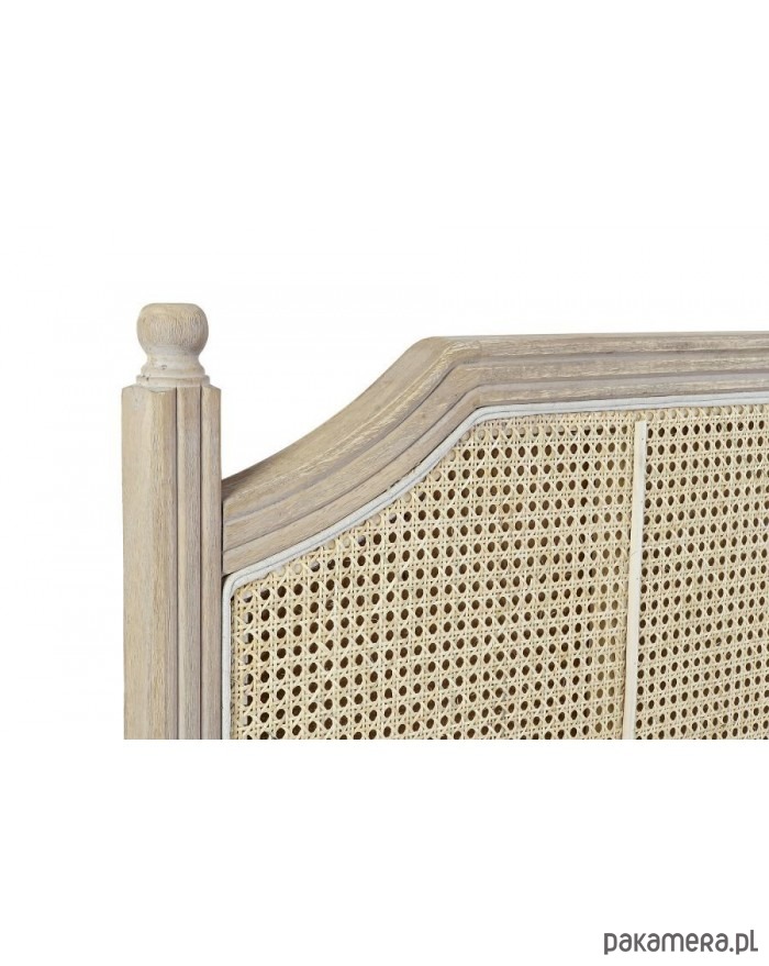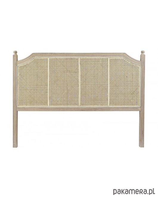Prostokątny, zwieńczony kolumienkami po bokach, wezgłówek do łóżka. Rama wykonana z drewna kauczukowego jest pięknie wypełniona plecionką wiedeńską z rattanu.