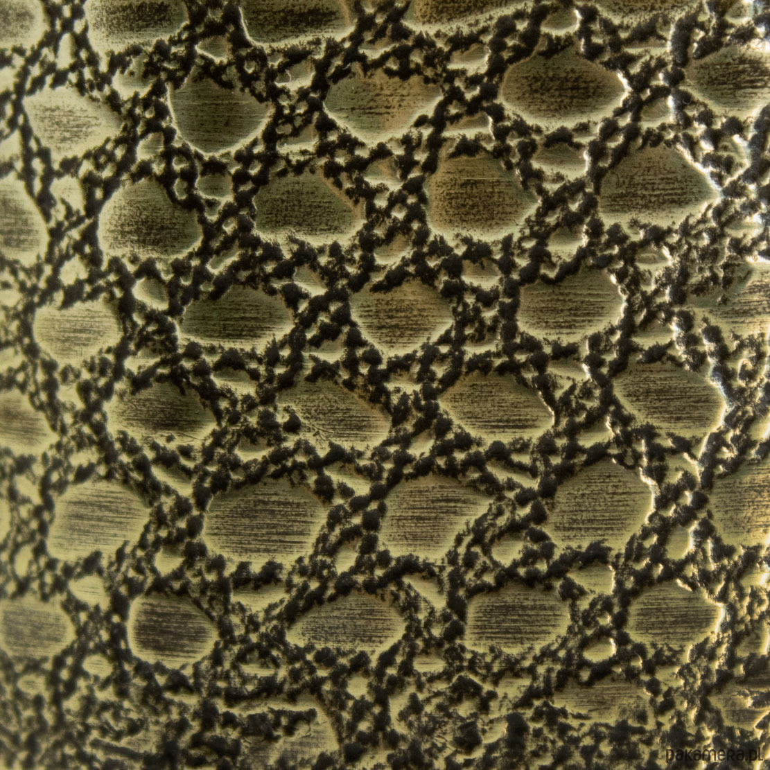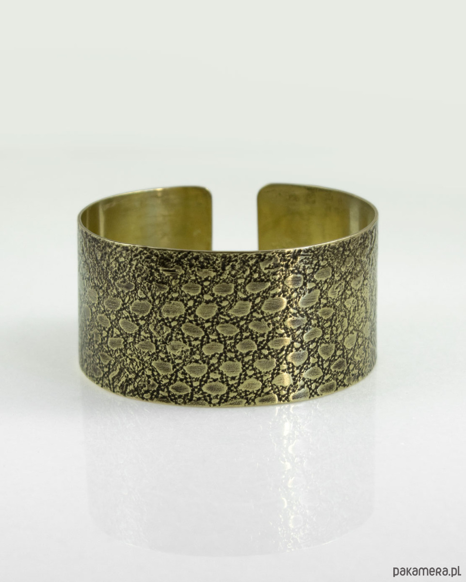Wzór jest lekko podkreślony ciemną patyną uzyskaną w procesie oksydacji (bez użycia sztucznych barwników). Nieznaczne ciemnienie metalu na skutek użytkowania jest procesem naturalnym (należy unikać długotrwałego kontaktu bransolety z wilgocią).
